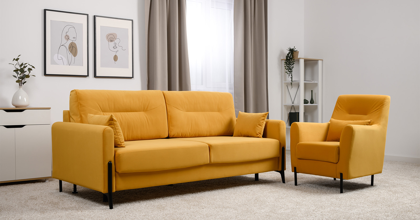 Диван-кровать прямой Барселона ТД 671 велюр Diagonal 540 желтый