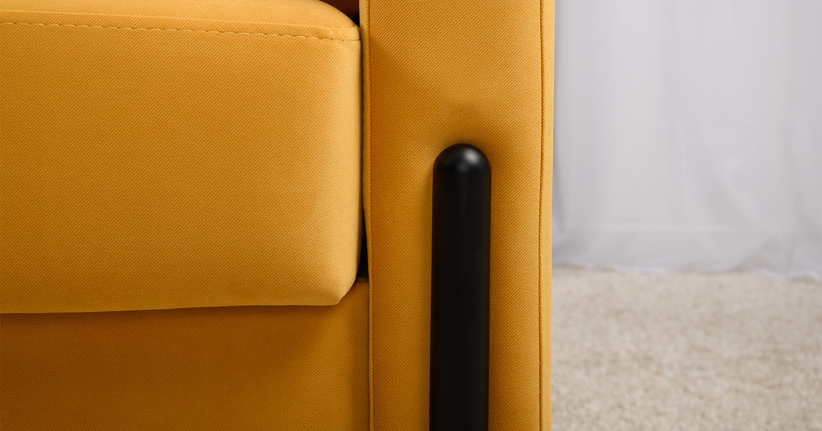 Металлические опоры плавно переходят в декоративный элемент подлокотника. Декоративная утяжка по приспинным подушкам