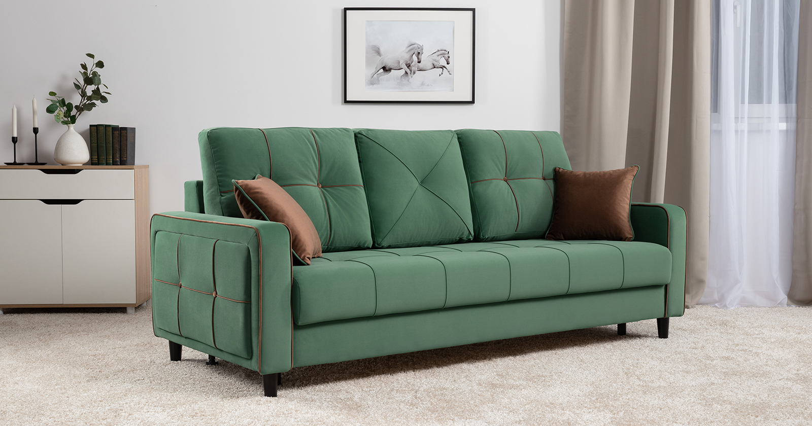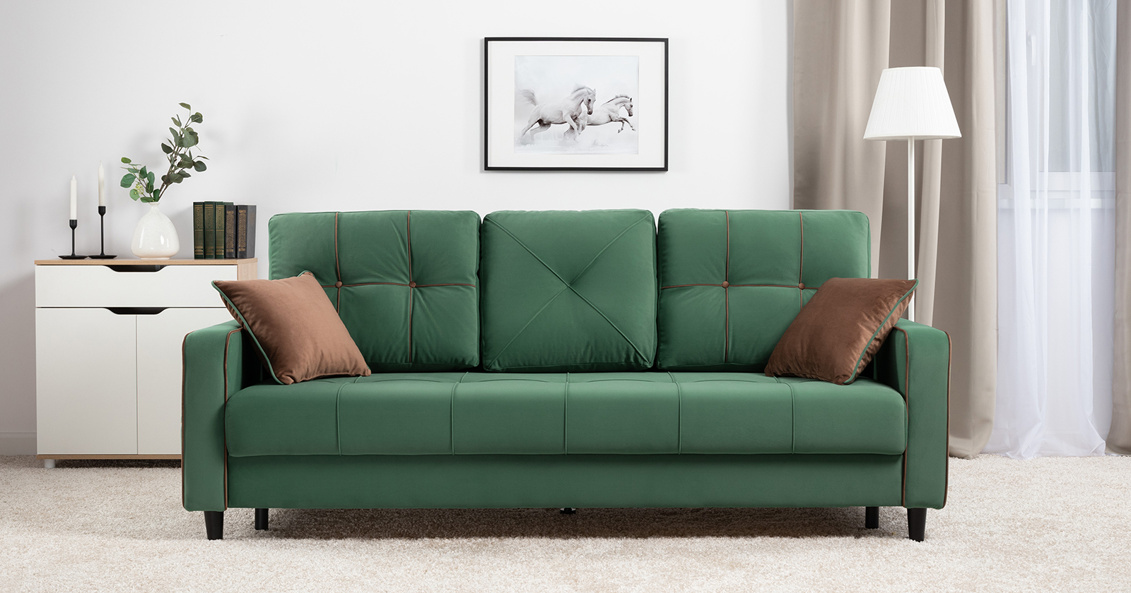Диван-кровать прямой Френсис ТД 260 велюр Амиго грин нефритовый зеленый