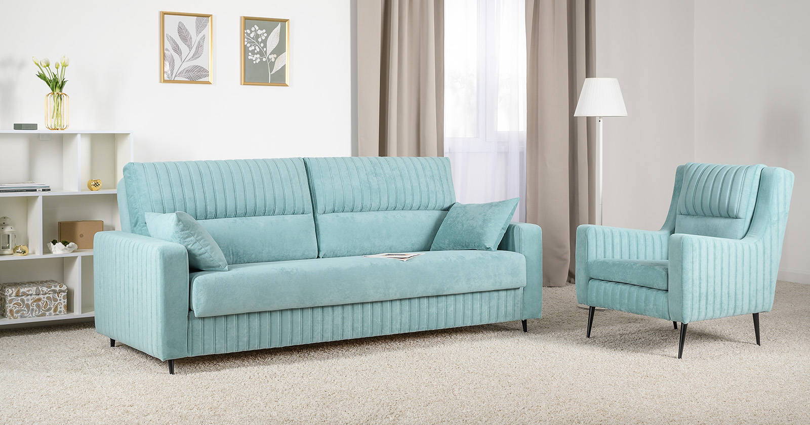 Диван-кровать прямой Изабель ТД 736 велюр Романс минт ментоловый