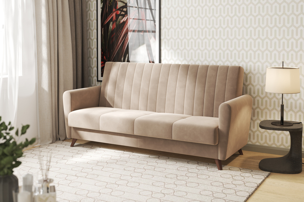 Диван-кровать прямой Монако велюр Вивальди 5 капучино с пружинным блоком (высота опор - 120мм)