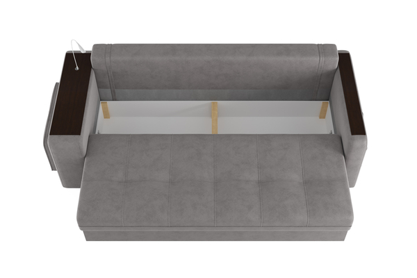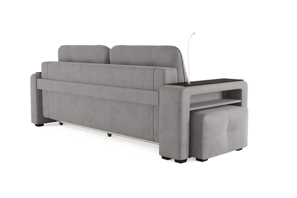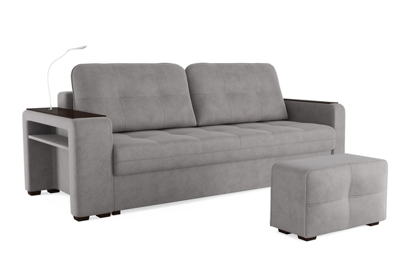 Диван «SMART 4» — это не просто мягкая мебель, а один из ключевых элементов интерьера с обширным функционалом, где эстетика тесно соседствует с комфортом и эргономичностью. Одна боковина оснащена карманом для хранения мелочей и гаджетов, другая боковина совмещает одновременно: рабочую поверхность, за счет широкой накладки, двойной usb - порт и портативную лампу точечного света, которая входит в комплект. Добавить контрастных деталей в интерьер поможет пуф, интегрированный в подлокотник. Этот вариант для современных людей, которые ценят комфорт и удобство отдыха. Мягкое сиденье с легкостью трансформируется в просторное спальное место, на котором смогут утроиться ваши гости. Стильный и уютный, он станет отличным решением, если вы ищите не только красоту, но и комфорт.