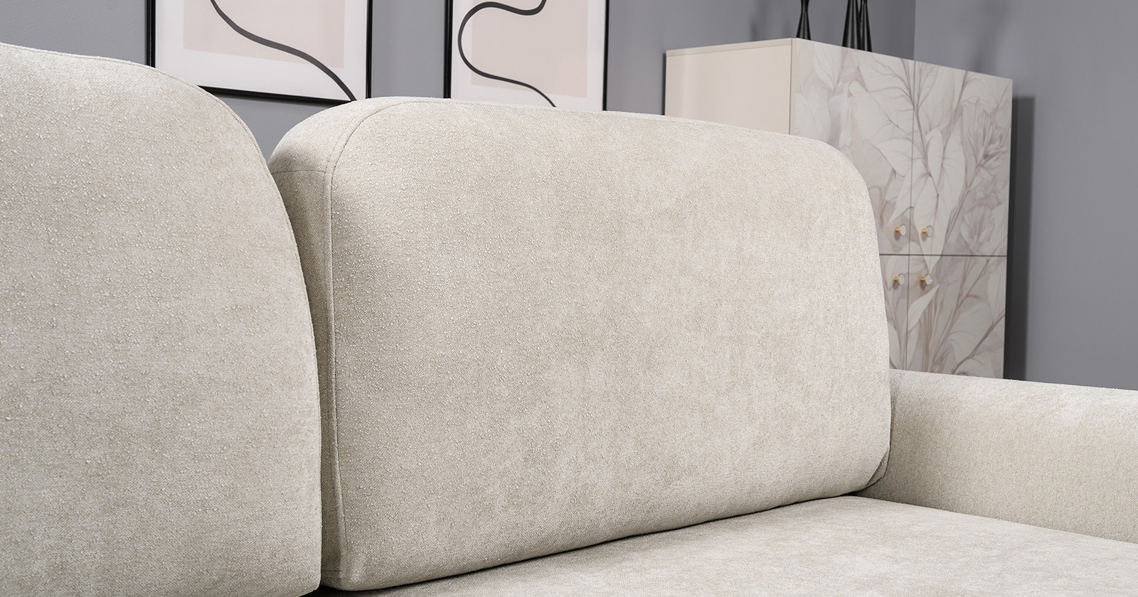 Диван-кровать угловой Тэдди 1502 композиция 3, букле Pique 006 бежевый, модульная система, сборка на любую сторону