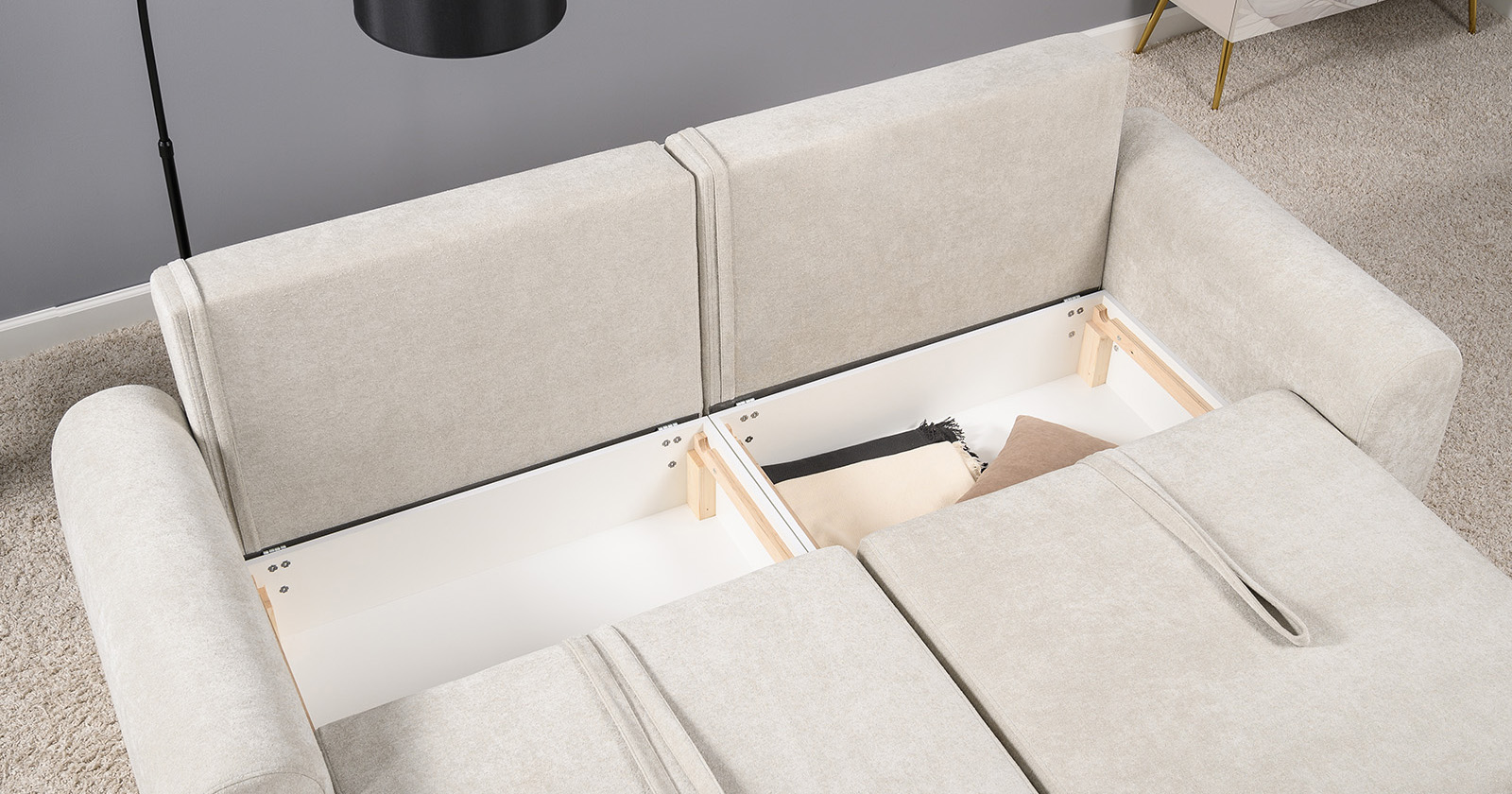 Диван-кровать угловой Тэдди 1502 композиция 2, букле Pique 006 бежевый, модульная система, сборка на любую сторону