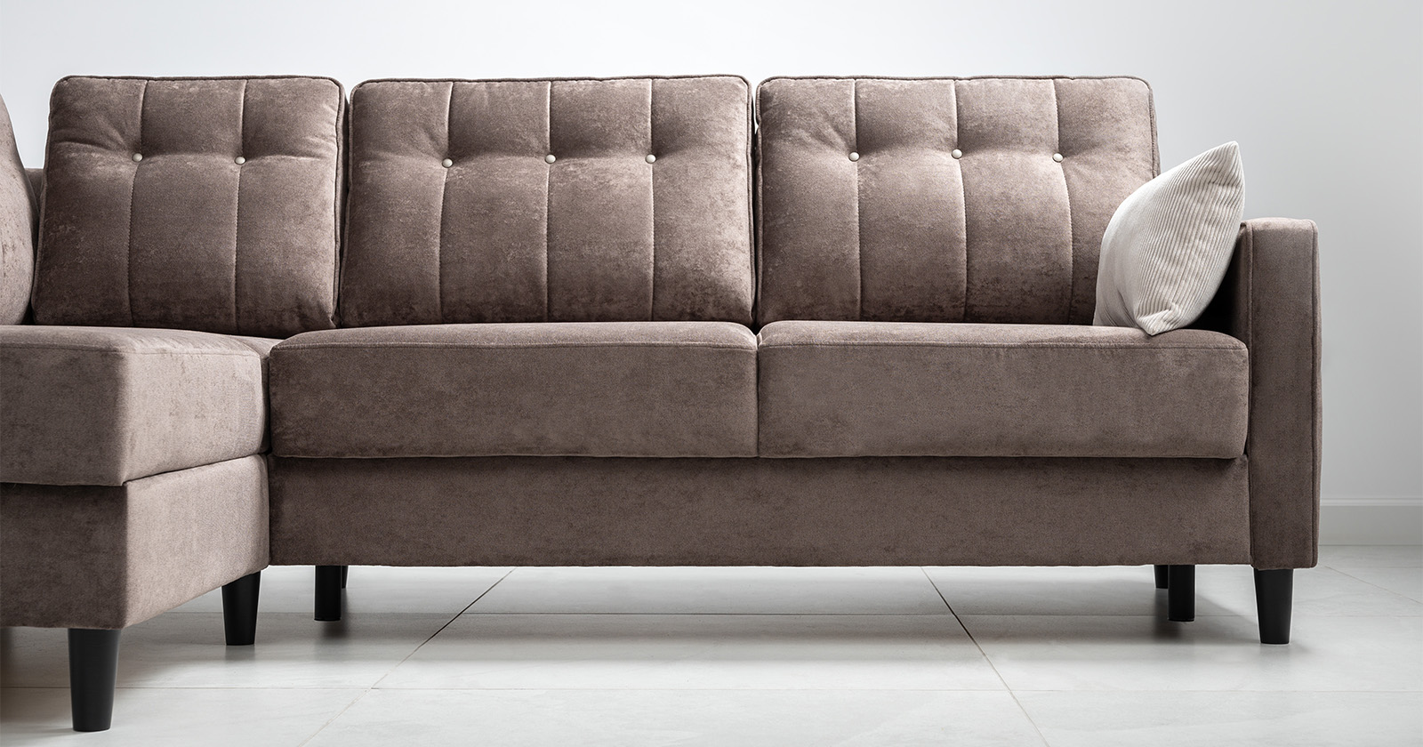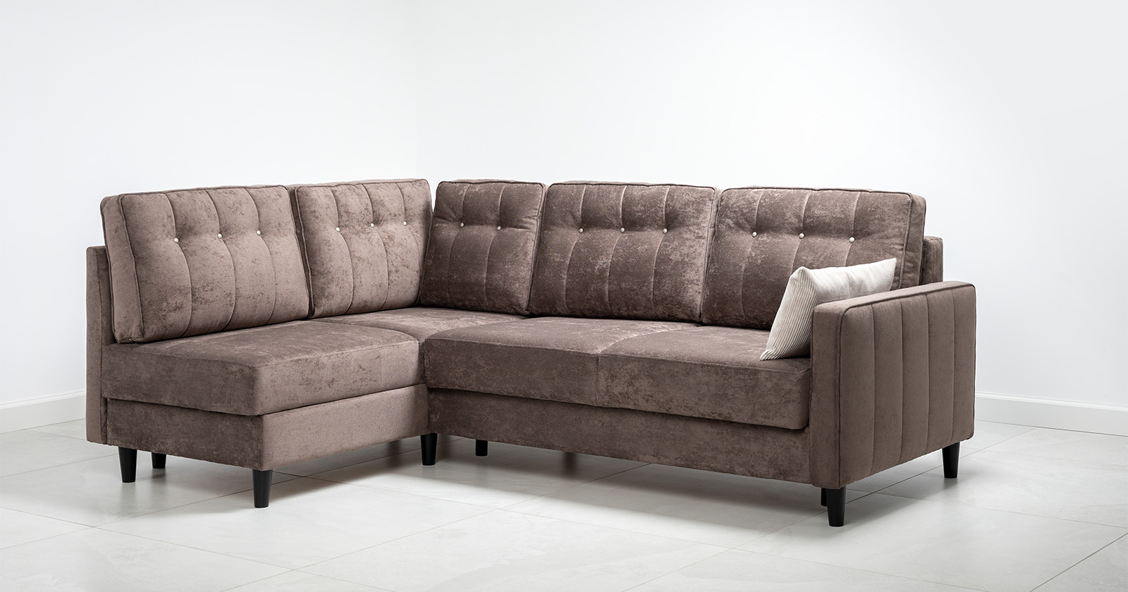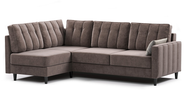 Диван-кровать угловой Арно ТД 564 велюр Лаки 06 коричневый перламутр, Vertical 910 молочно-серый, сборка на любую сторону