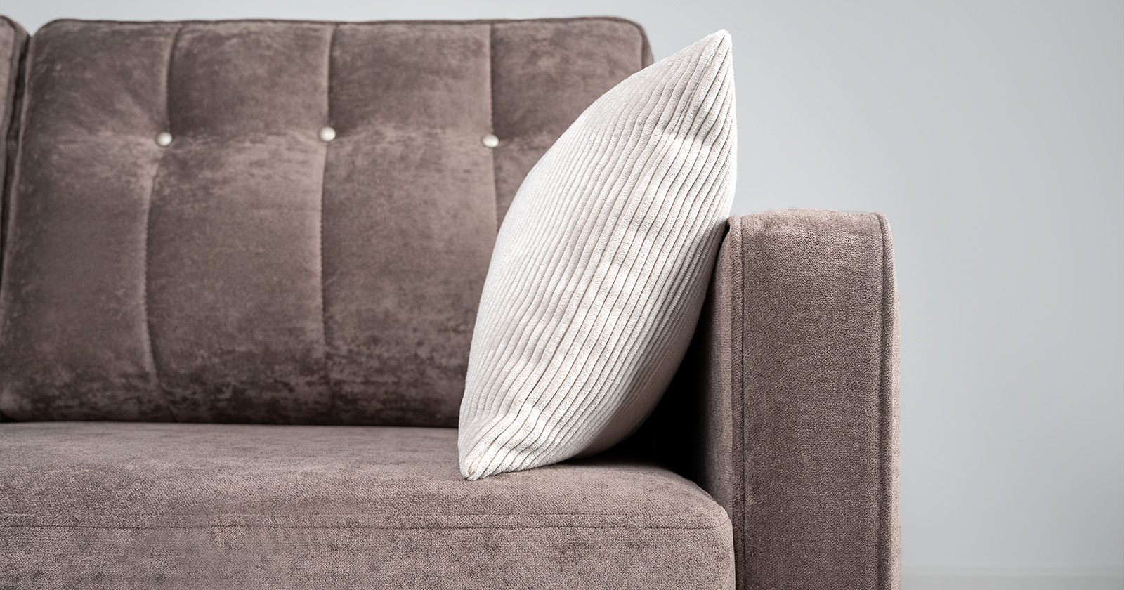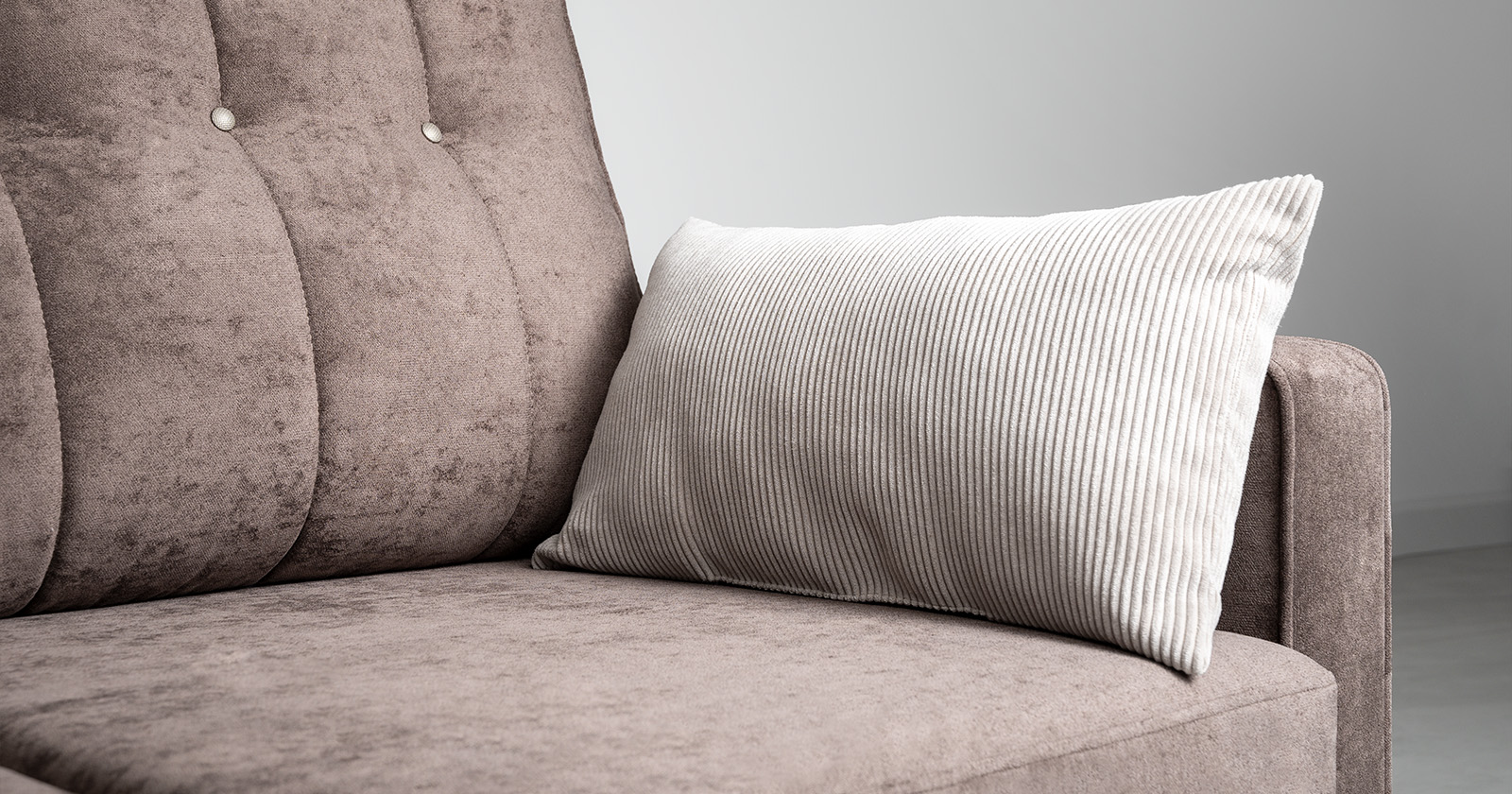 Подушки имеют трапециевидную форму, с утолщением к низу для комфорта посадки. Кант по всему периметру подушек, декоративные утяжки металлическими пуговицами, вертикальная стежка.