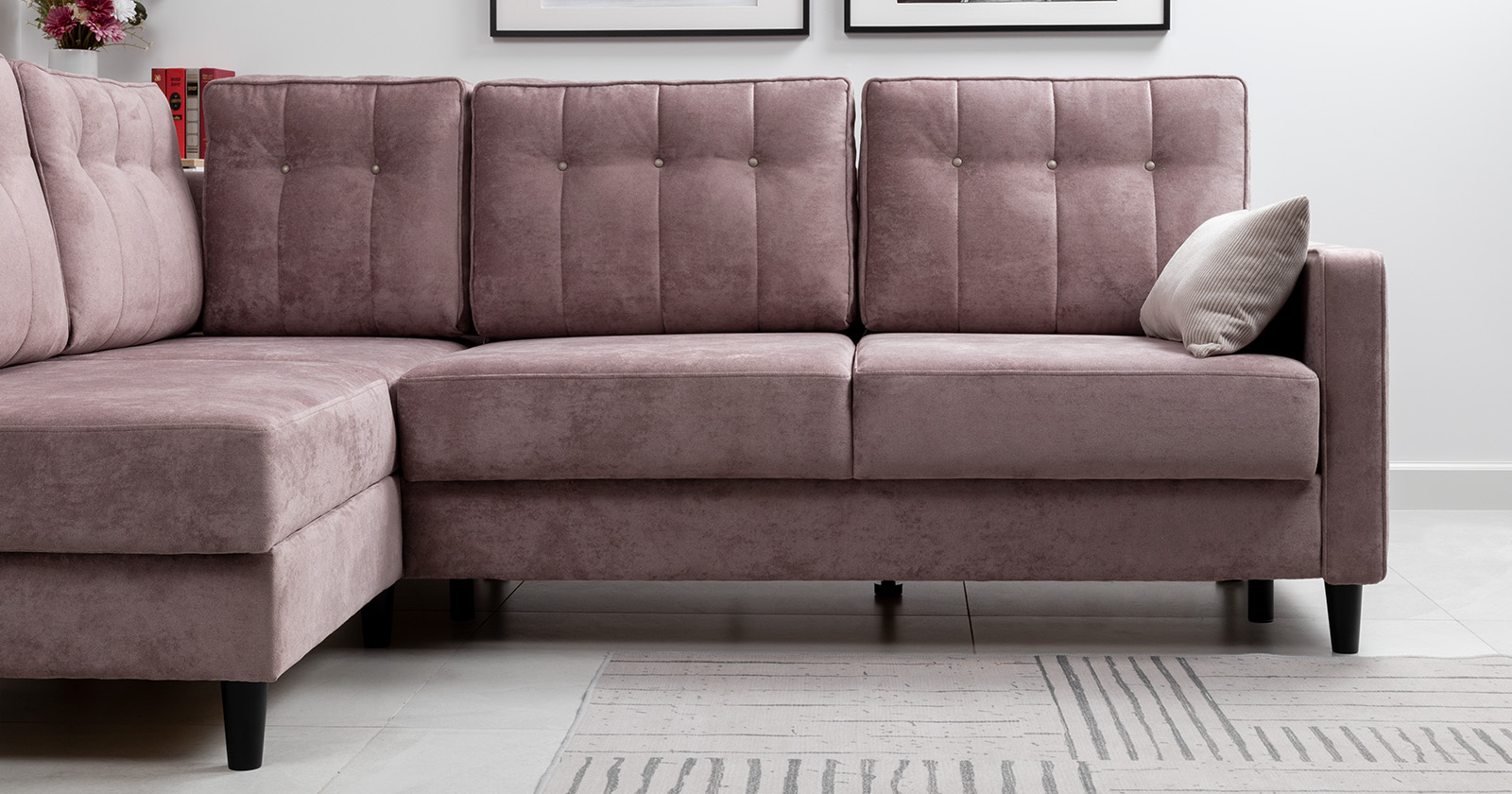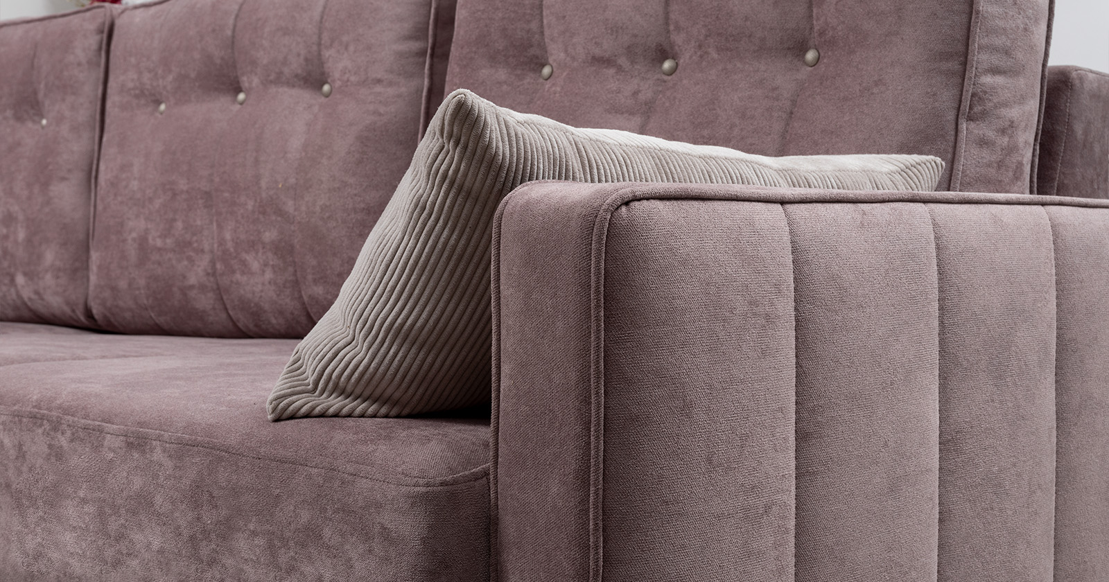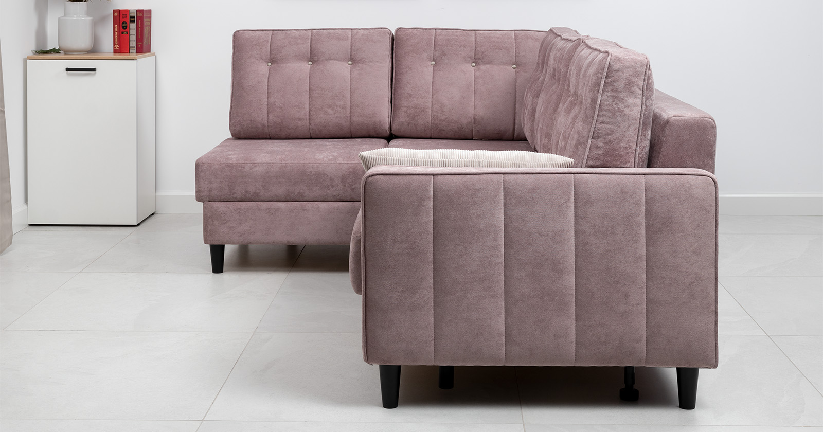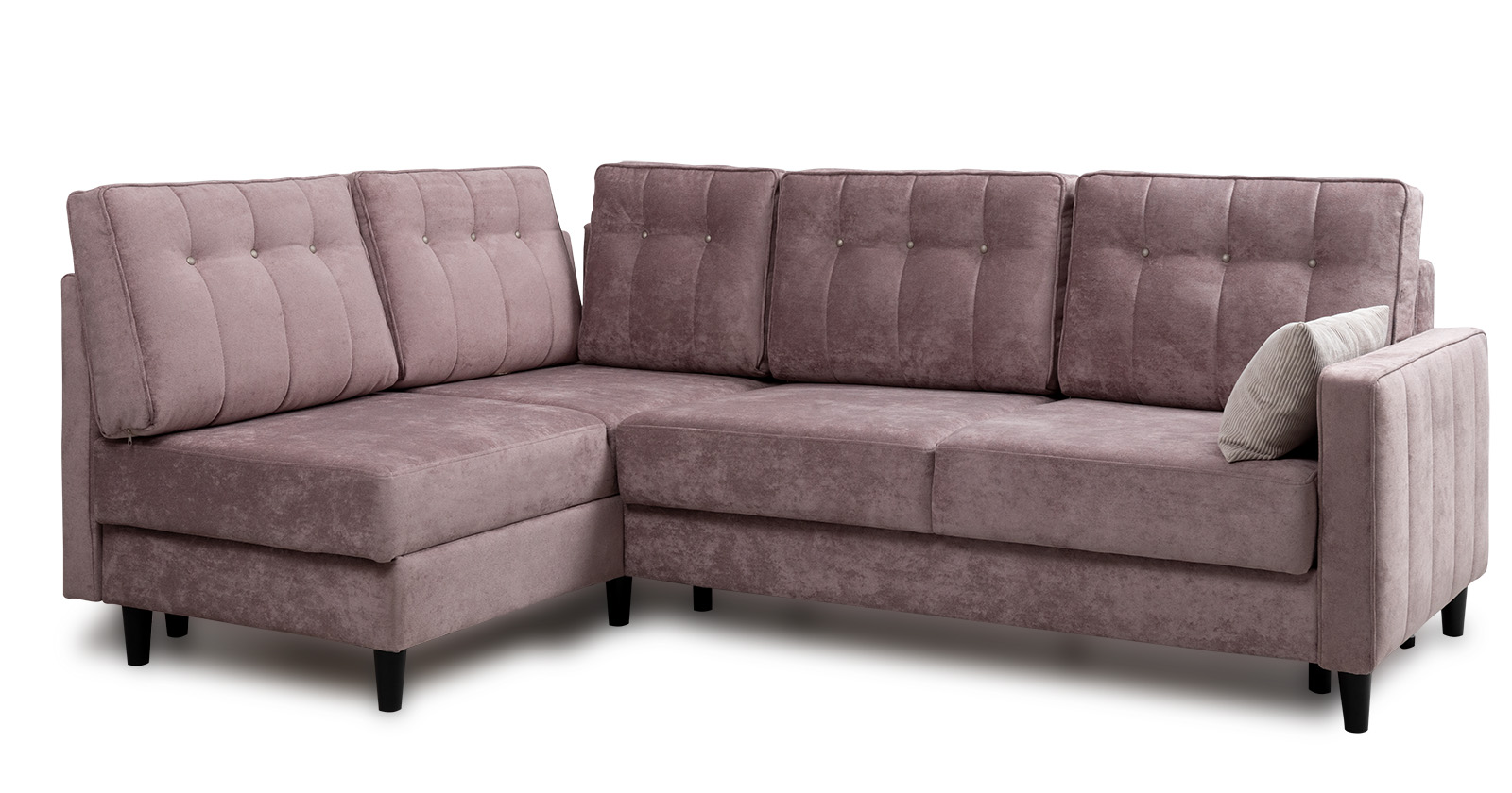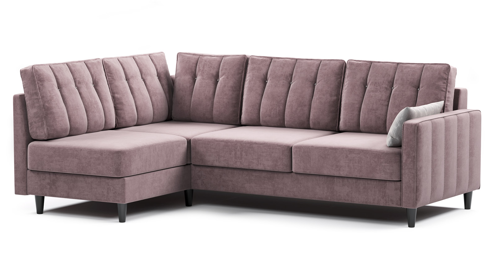 Диван-кровать угловой Арно ТД 567 велюр Лаки 17 пепел розы, Vertical 910 молочно-серый, сборка на любую сторону