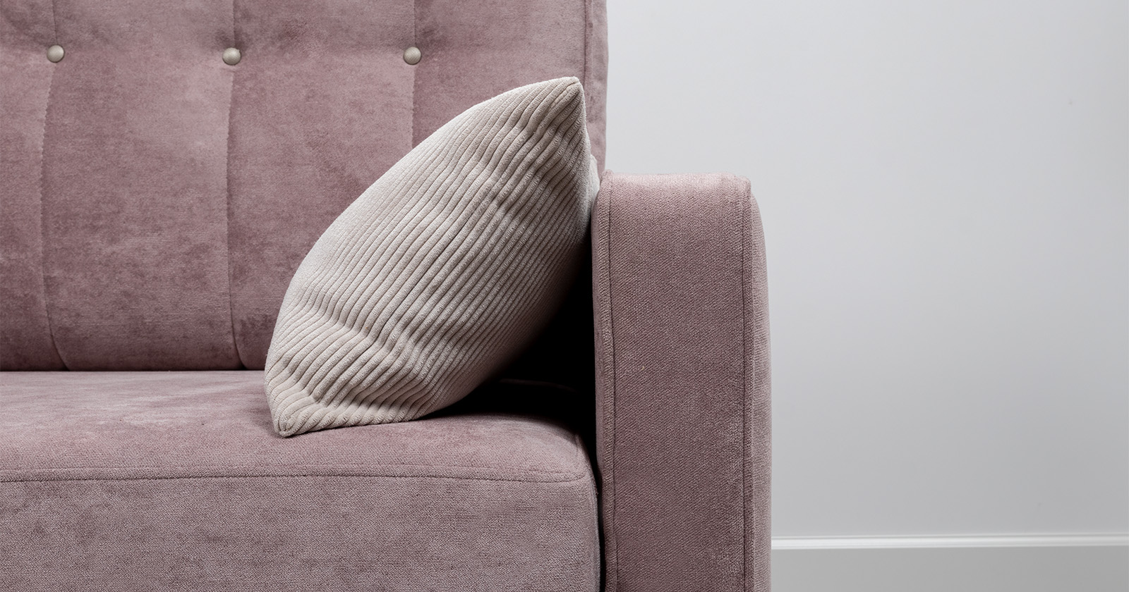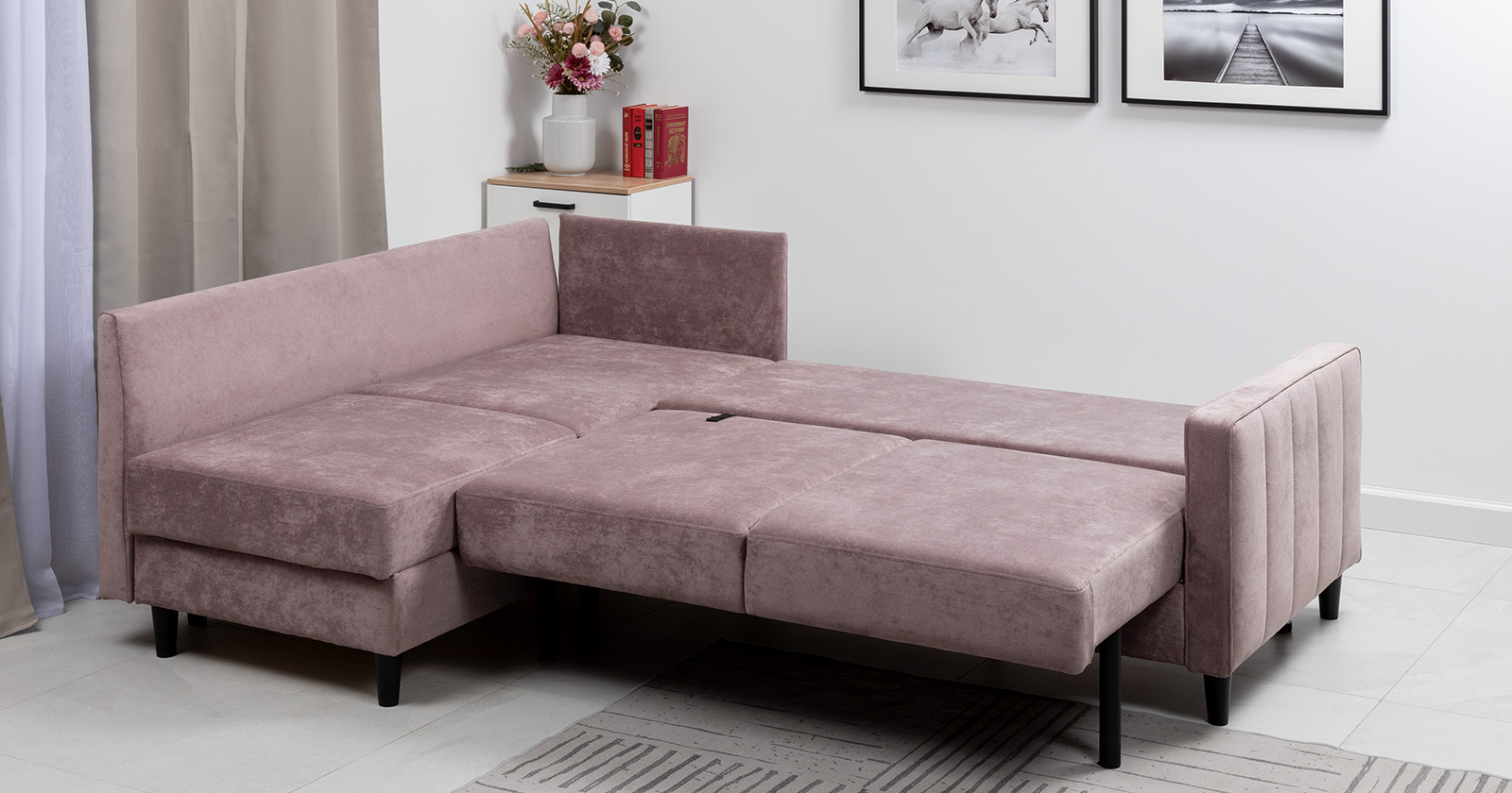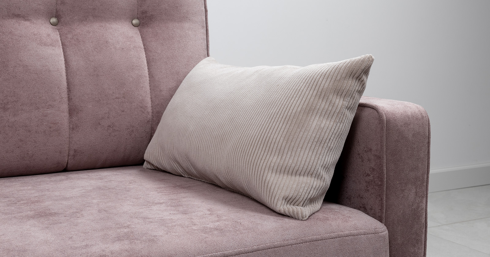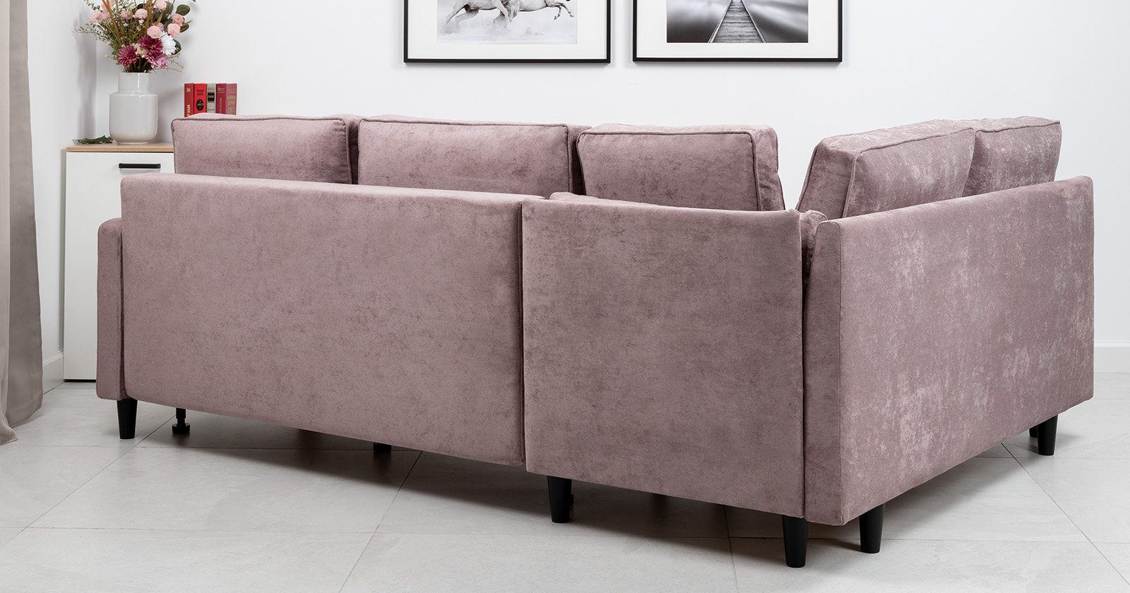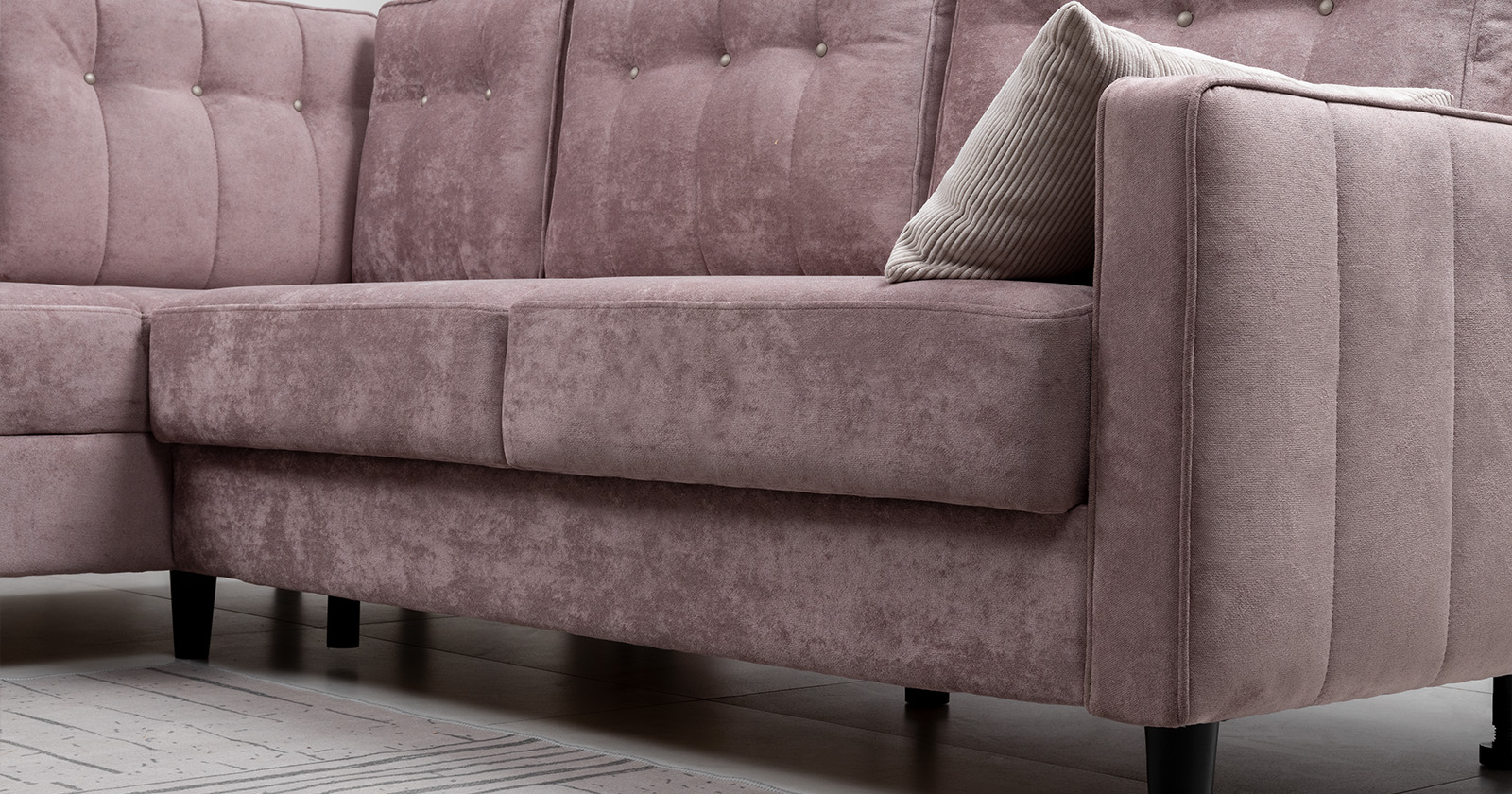 Диван-кровать угловой Арно ТД 567 велюр Лаки 17 пепел розы, Vertical 910 молочно-серый, сборка на любую сторону
