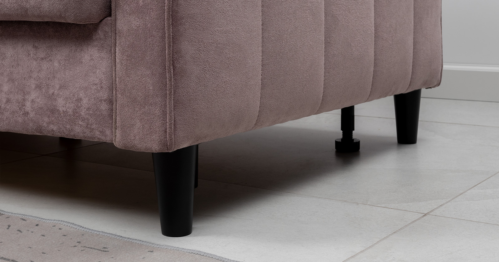 Модель с универсальным углом подойдёт любителям часто менять обстановку. Устойчивые конесообразные деревянные ножки придают дивану легкость и изящество. Для завершения интерьера можно заказать кресло Арно.