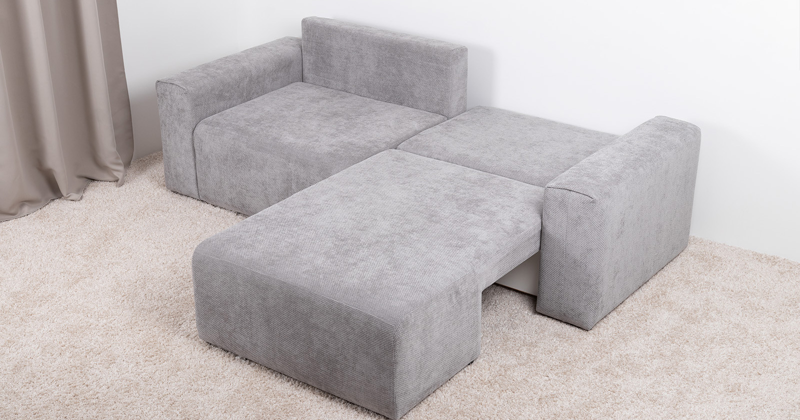 Диван-кровать угловой Тэдди 1506 композиция 3, букле Pique 011 серый, модульная система, сборка на любую сторону