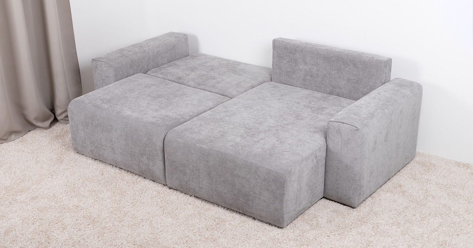 Диван-кровать угловой Тэдди 1505 композиция 2, букле Pique 010 светло-серый, модульная система, сборка на любую сторону