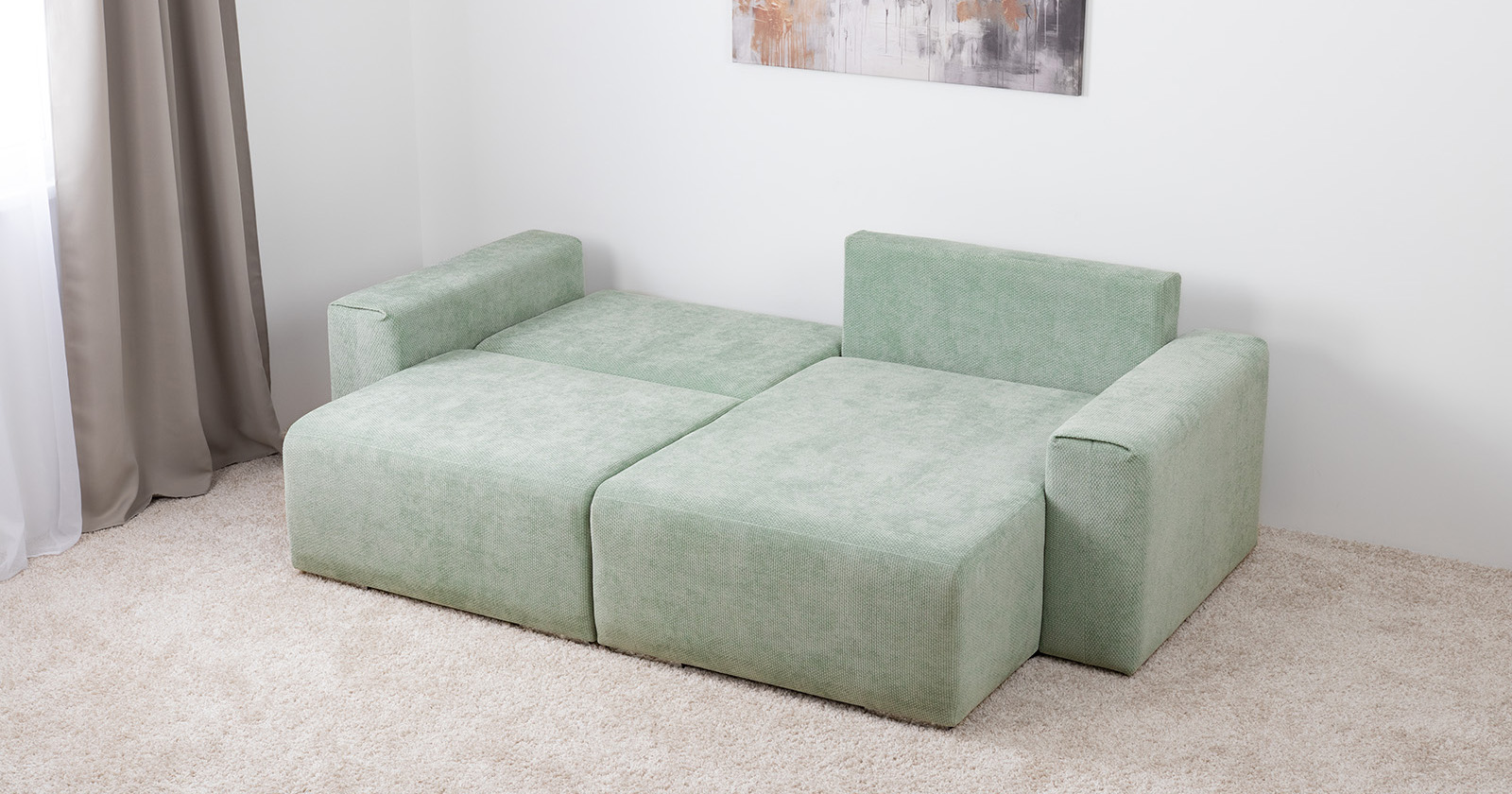 Диван-кровать угловой Оксфорд 715 композиция 4, шенилл STORM 9 мятный, модульная система, сборка на любую сторону