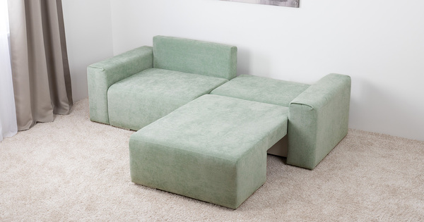 Диван-кровать угловой Оксфорд 715 композиция 1, шенилл STORM 9 мятный, модульная система, сборка на любую сторону