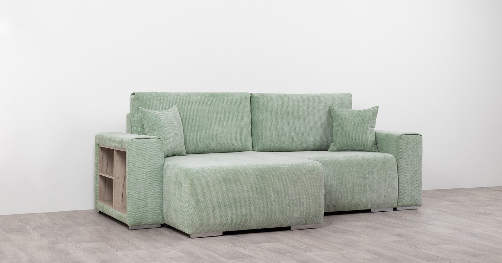 Диван-кровать угловой Оксфорд 715 композиция 1, шенилл STORM 9 мятный, модульная система, сборка на любую сторону