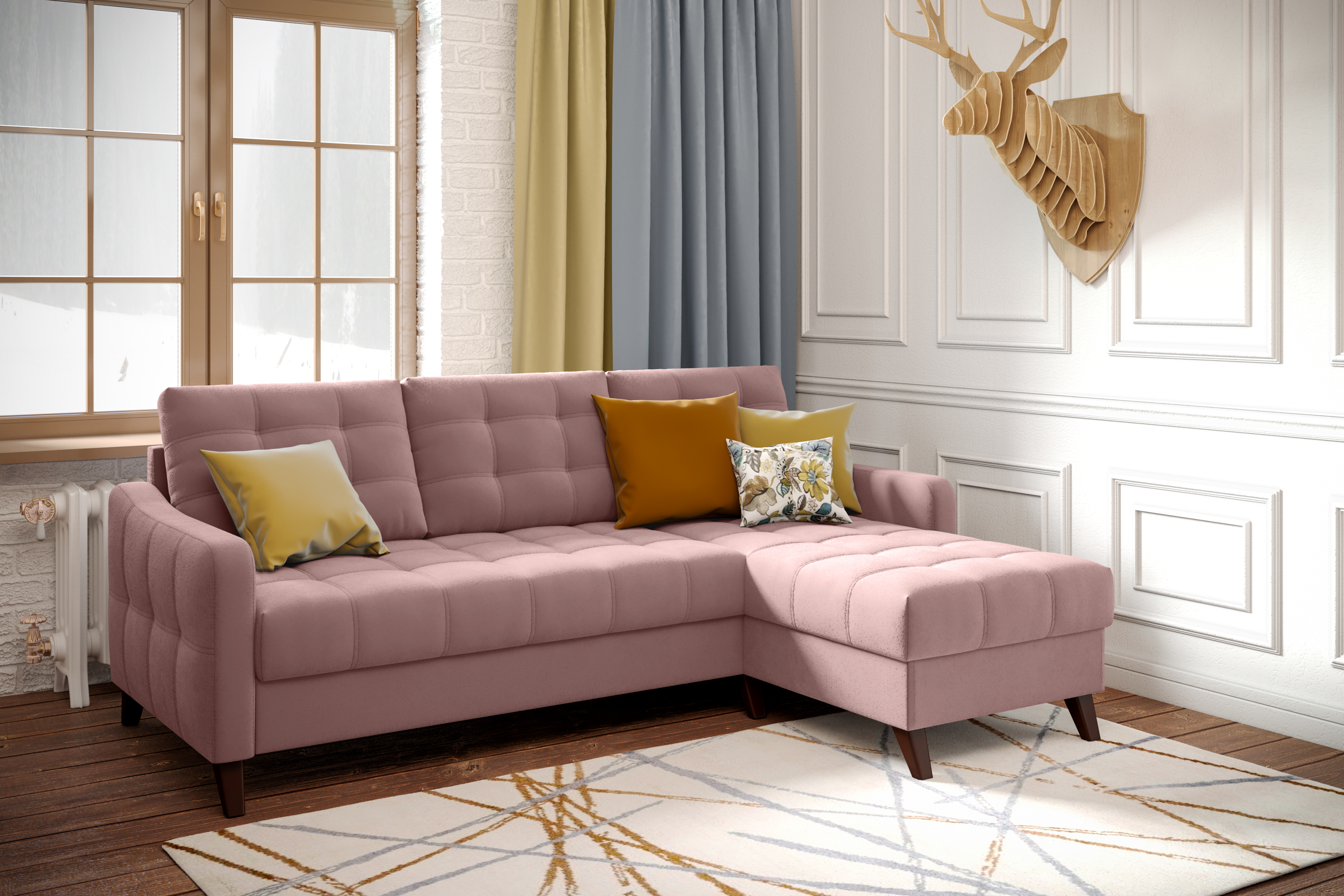 Диван-кровать угловой Римини 1 велюр Velutto 11 сиреневый (2Т-1Пф, 1Пф-2Т)