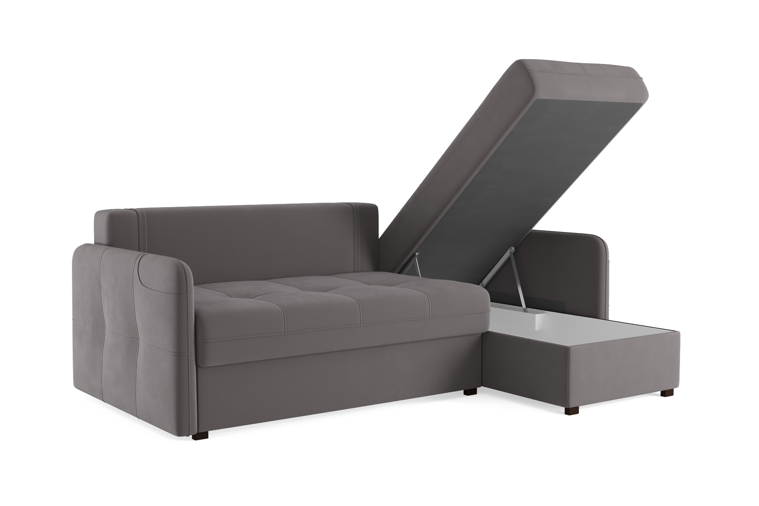 Диван-кровать угловой SMART 1 правый, велюр Velutto 19 темно-серый (2Т-1Пф)