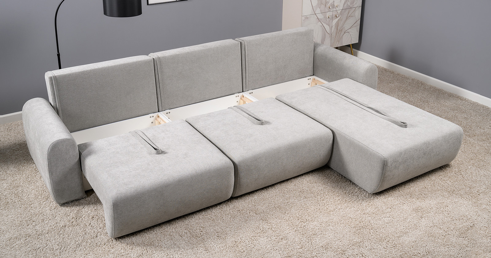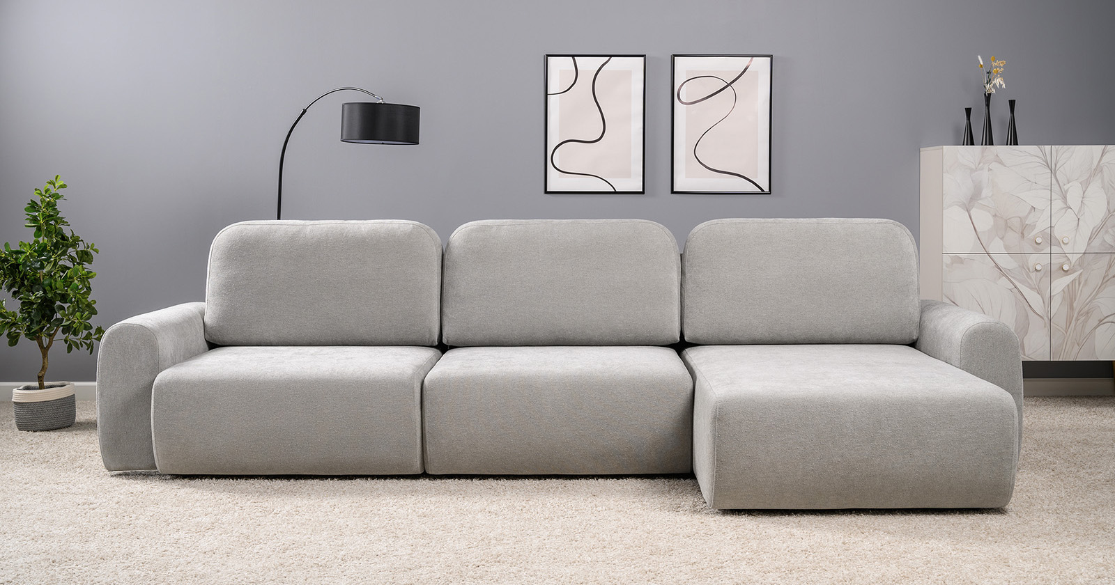 Диван-кровать угловой Тэдди 1506 композиция 3, букле Pique 011 серый, модульная система, сборка на любую сторону