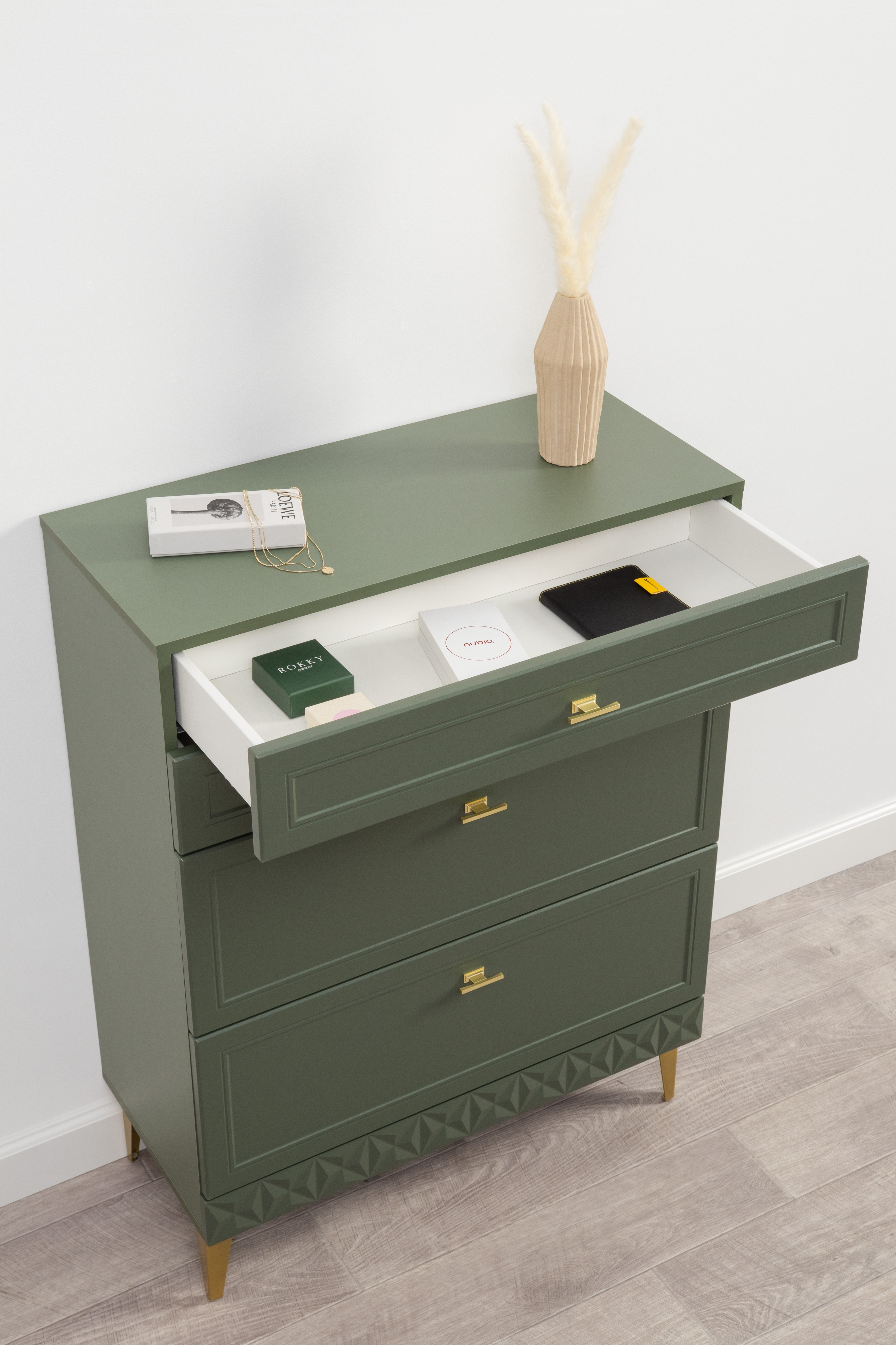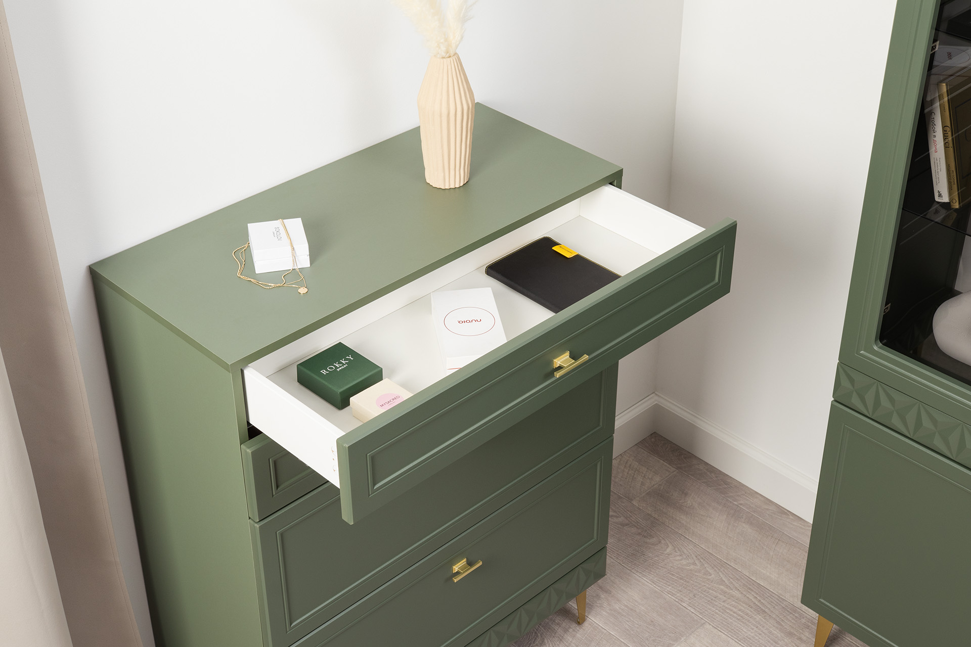 Тумба Марион 16.167 дымчатый зеленый K521, олива шагрень AG 1050 ПВХ, белый PE шагрень