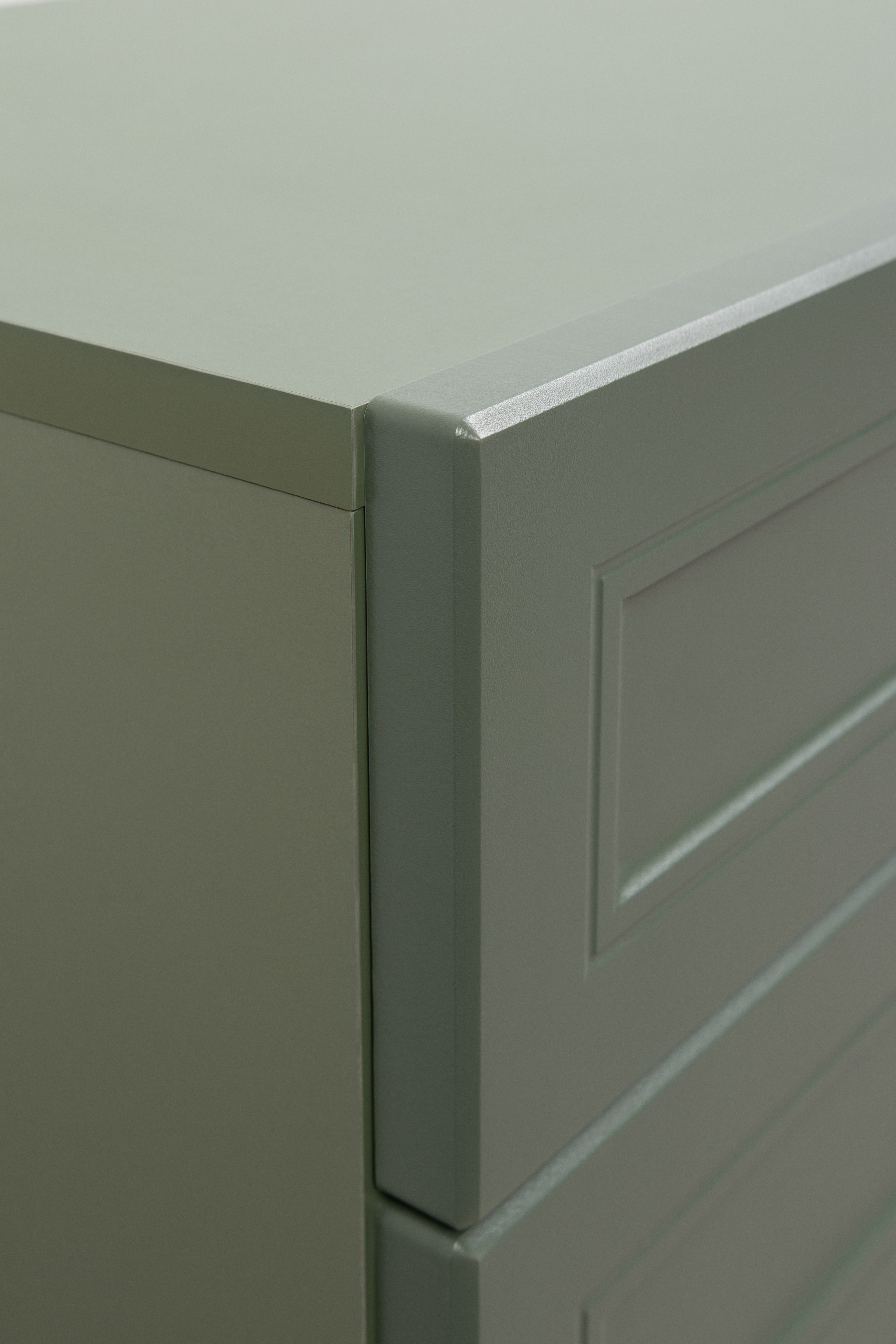 Комод Марион 16.256 дымчатый зеленый K521, олива шагрень AG 1050 ПВХ, белый PE шагрень