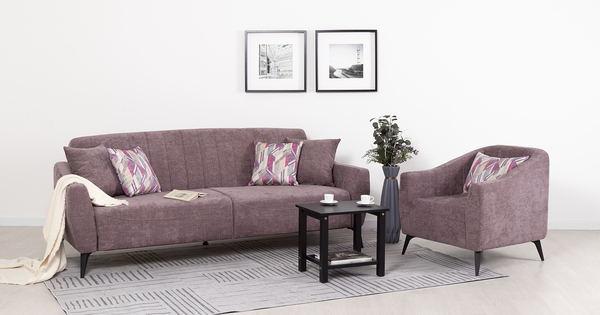 Диван-кровать прямой Наоми ТД 481 шенилл приглушенный пурпурный, микровелюр ягодный