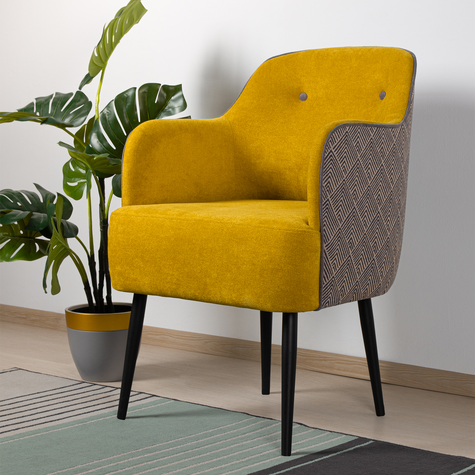 Кресло для отдыха Селеста ТК 477 велюр горчичный, жаккард серо синий, графитово-серый