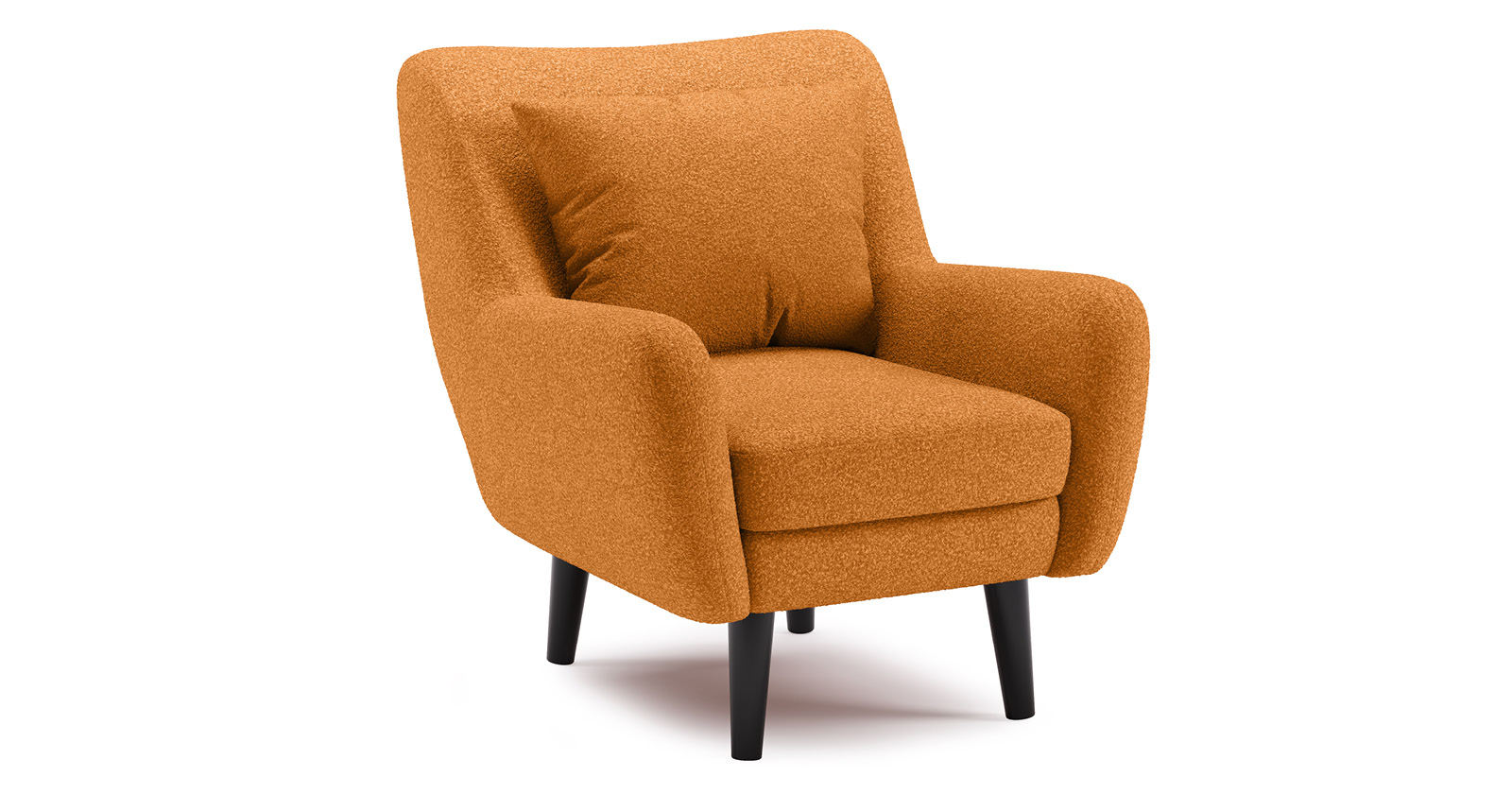Кресло Шон станет вашим любимым местом для отдыха. Мягкое кресло с удобной спинкой даст вам расслабиться и отдохнуть. Благодаря небольшим размерам кресло подходит для многих современных квартир-студий или небольших комнат. Ткань букле делает кресло особенно уютным и мягким. Приспинная подушка в цвете кресла.