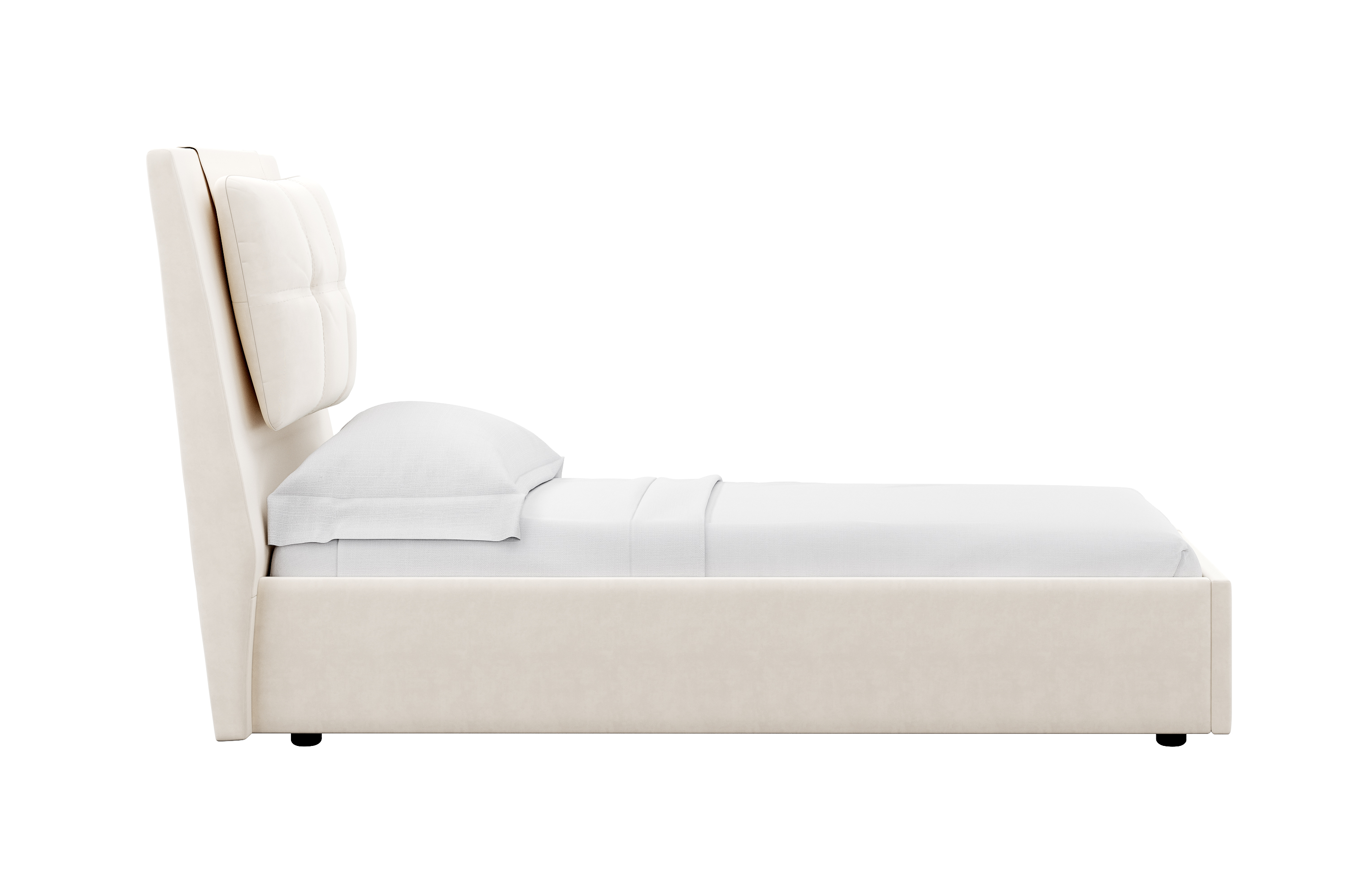 Кровати выполнены в нейтральных и в ярких тканях велюр, что позволяет подобрать подходящий вариант почти под любой интерьер. Изголовье имеет прямоугольную форму, повторяя очертания кровати. В качестве декора применяются декоративные подушки на изголовье.
