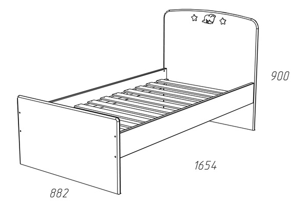 НМ 041.06 Кровать, НМ 041.06-01 Ограждение, Кровать - 1654*884 h 900, Ограждение - 900*340 h 40
