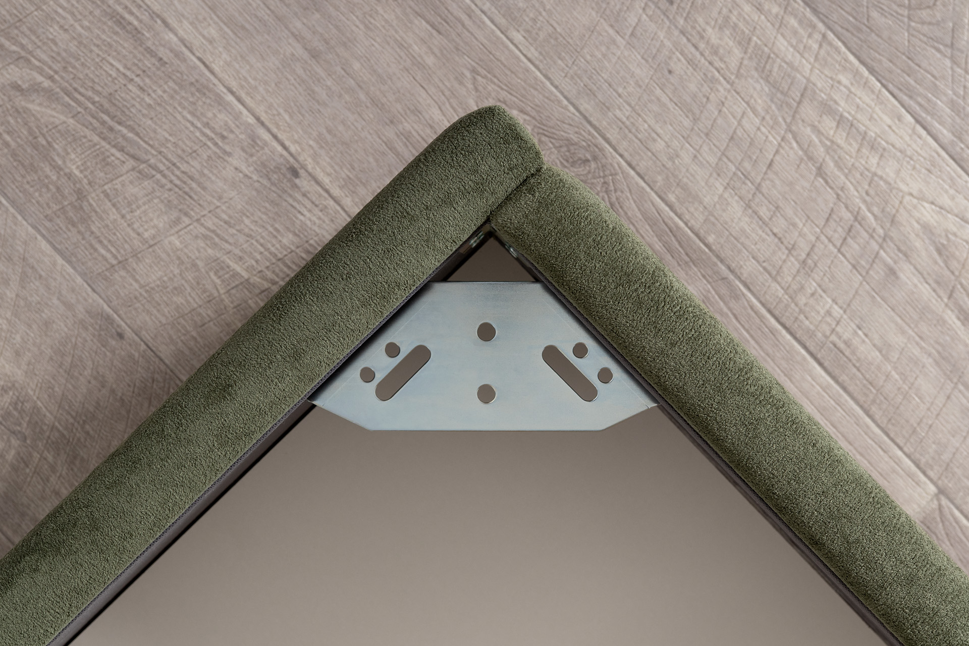 Основание кровати укомплектовано матрасодержателями. Жесткое кроватное дно из ЛДСП 16 мм на опорах 25 мм.