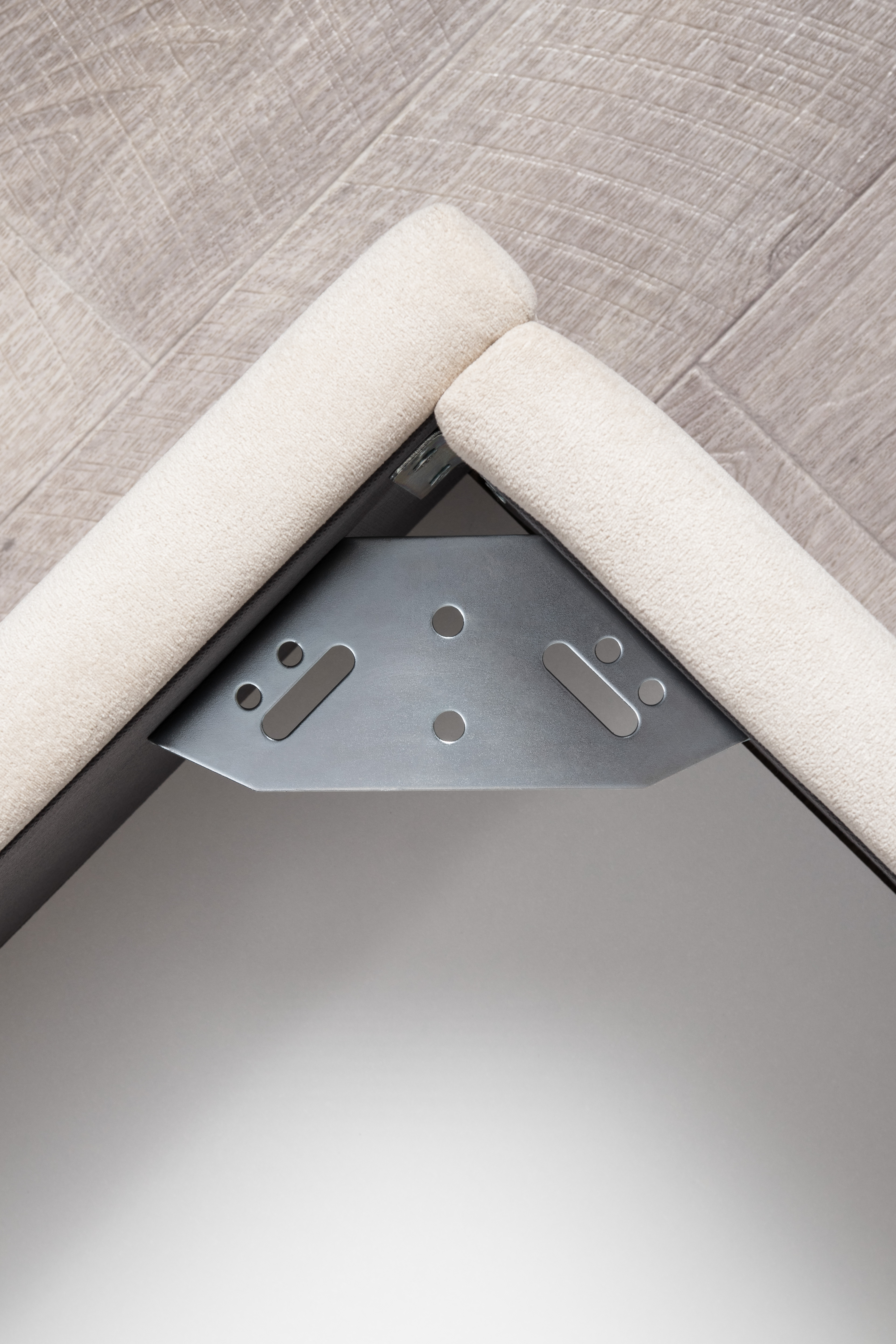 Основание кровати укомплектовано матрасодержателями. Жесткое кроватное дно из ЛДСП 16 мм на опорах 25 мм.