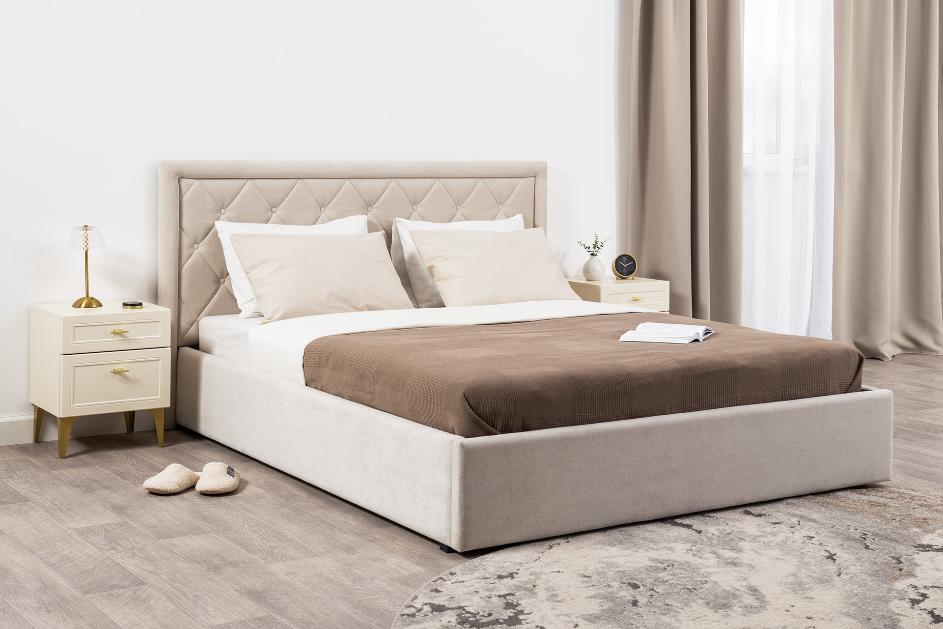 Кровать Марион 160 велюр OCEAN 002 бежевый с ортопедическим основанием и подъемным механизмом (спальное место 160 х 200)