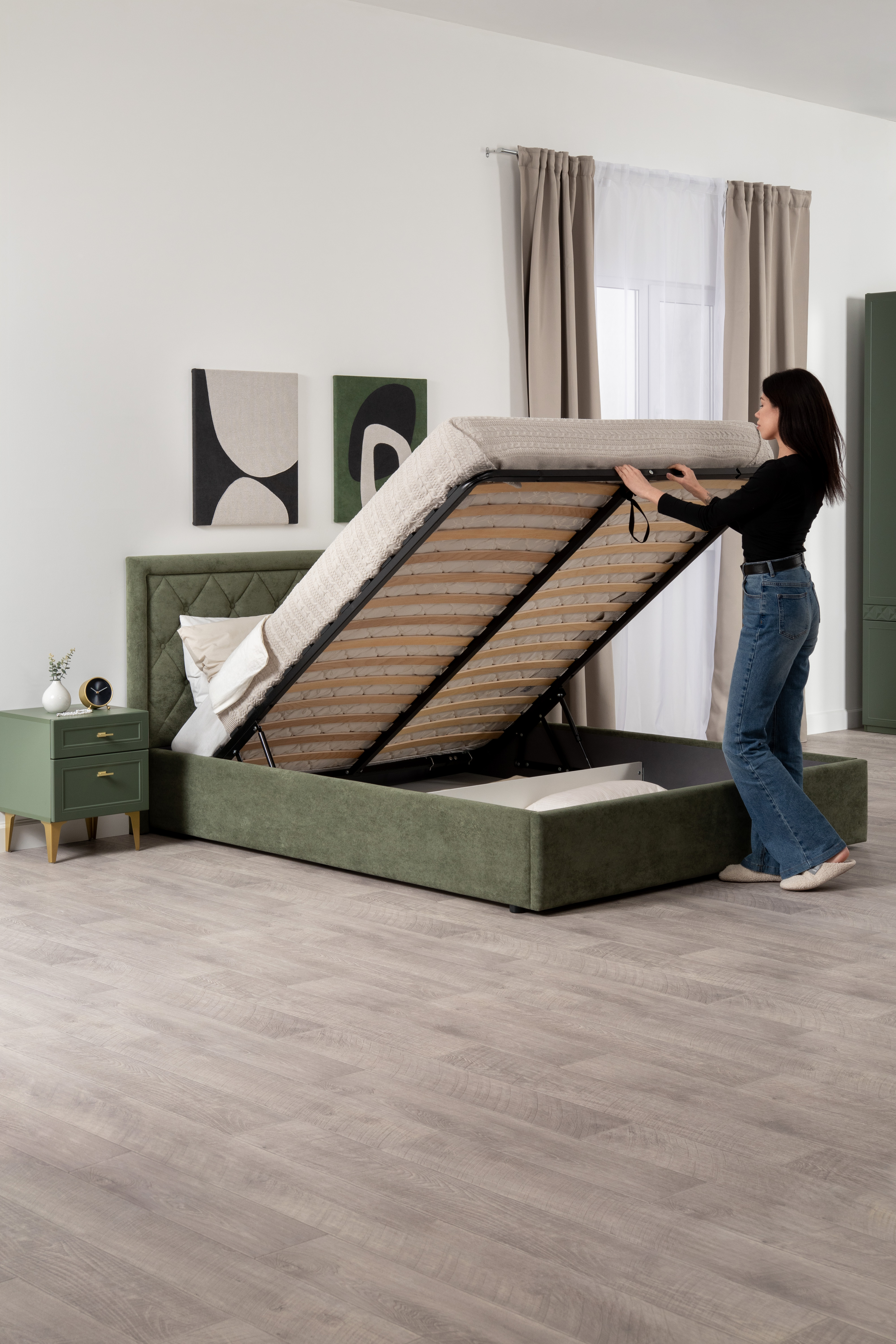 Кровать Марион 160 велюр OCEAN 012 темно-зеленый с ортопедическим основанием и подъемным механизмом (спальное место 160 х 200)