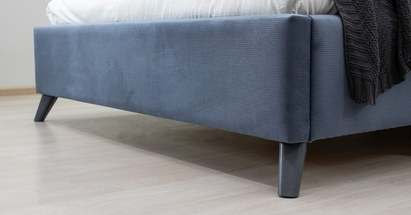 Основание кровати укомплектовано матрасодержателями. Жесткое кроватное дно из МДФ 6 мм. Задняя стенка изголовья выполнена в тех. ткани (спанбонд)