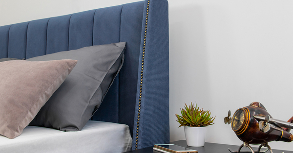 Изголовье с боковыми накладками, декорированными мебельным молдингом-гвоздиками