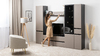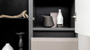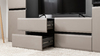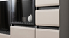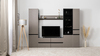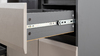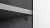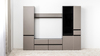 Фасады открываются за край либо нажатием (механизм push-to-open). Распашные фасады оснащены доводчиками. Полка крепится к боковинам соседних модулей.