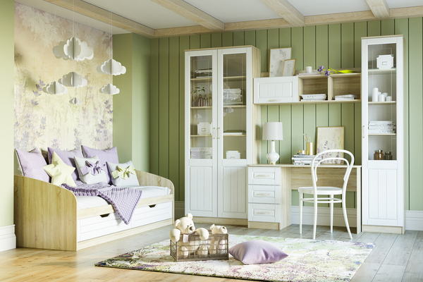 Полка Оливия НМ 011.38-01 Х органично дополнит рабочее место в детской. Закрытая секция модуля подойдет для хранения книг. Газлифты максимально высоко поднимают фасад вверх, обеспечивая большую площадь обзора содержимого. Предметы декора будут хорошо смотреться в открытых секциях полки.