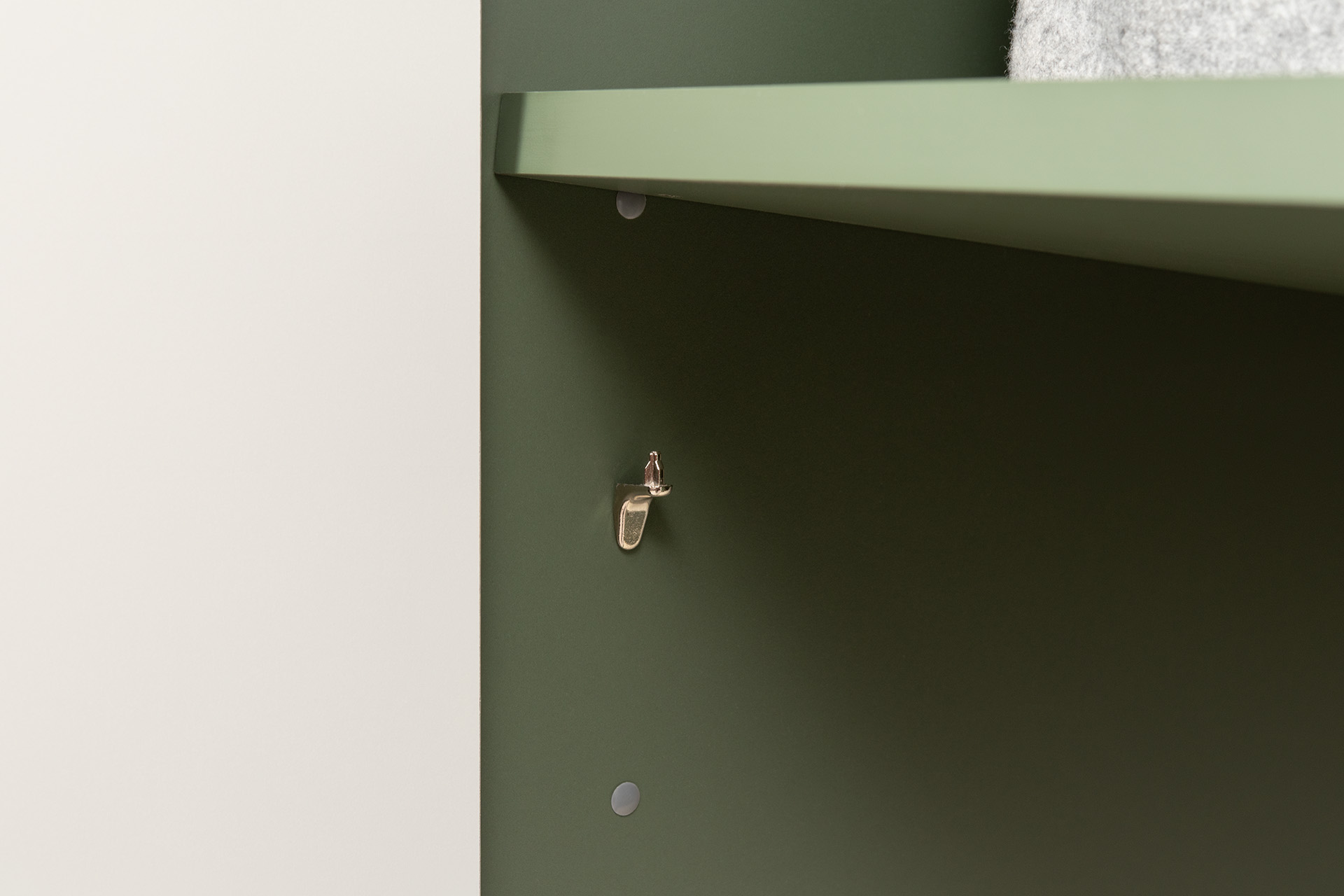 Шкаф для одежды Марион 16.340.03 дымчатый зеленый K521, олива шагрень AG 1050 ПВХ (собирается на любую сторону)