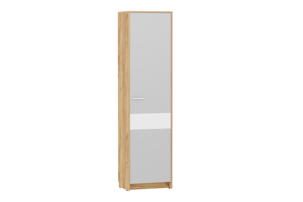 Эргономичная мебель "Нортон" не будет загромождать помещение, а преобладание светлых оттенков значительно расширяет комнату. Выразительность помещению можно внести яркими акцентами и контрастными тонами. Шкаф универсальной сборки (может быть собран для навешивания как на правую вертикальную стенку, так и на левую).