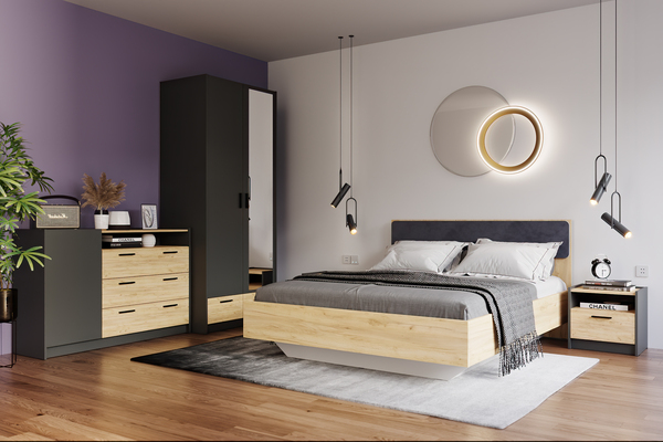 Тумба прикроватная Оттавия НМ 011.15 антрацит, дуб крафт золотой