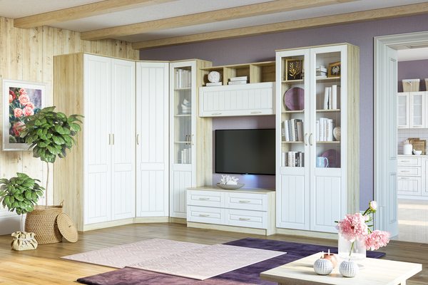 Шкаф Оливия НМ 040.43 Ф не займет много места в гостиной. Модуль изготавливается в двух вариантах на выбор клиента: с глухим фасадом и с витриной. Шкаф со стеклом понравится тем, кто хочет добавить больше света в пространство гостиной. Вариант с глухим фасадом подойдет для тех, кто хочет хранить в шкафу одежду. Внутри модуля на пяти полках можно разместить большое количество вещей.
