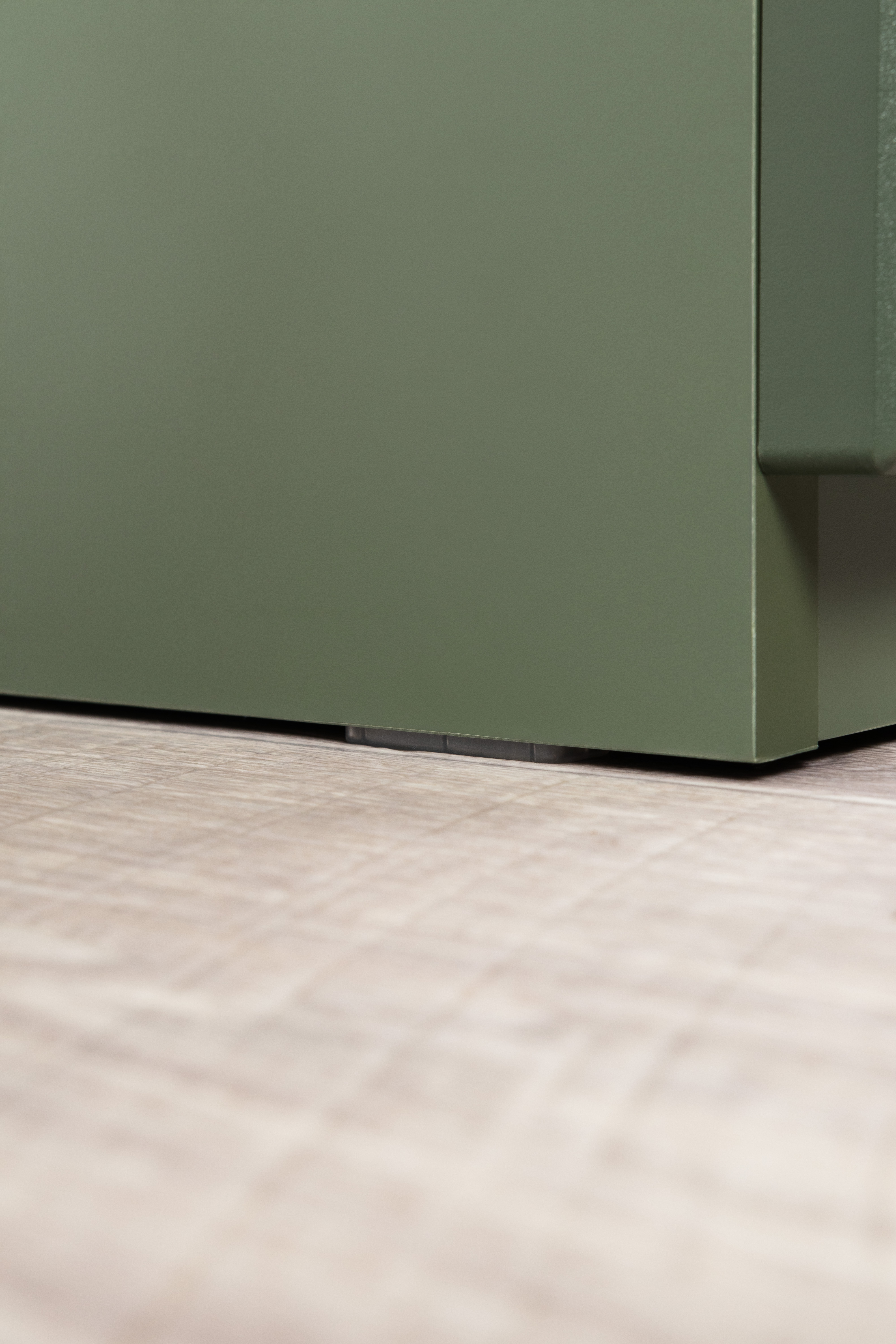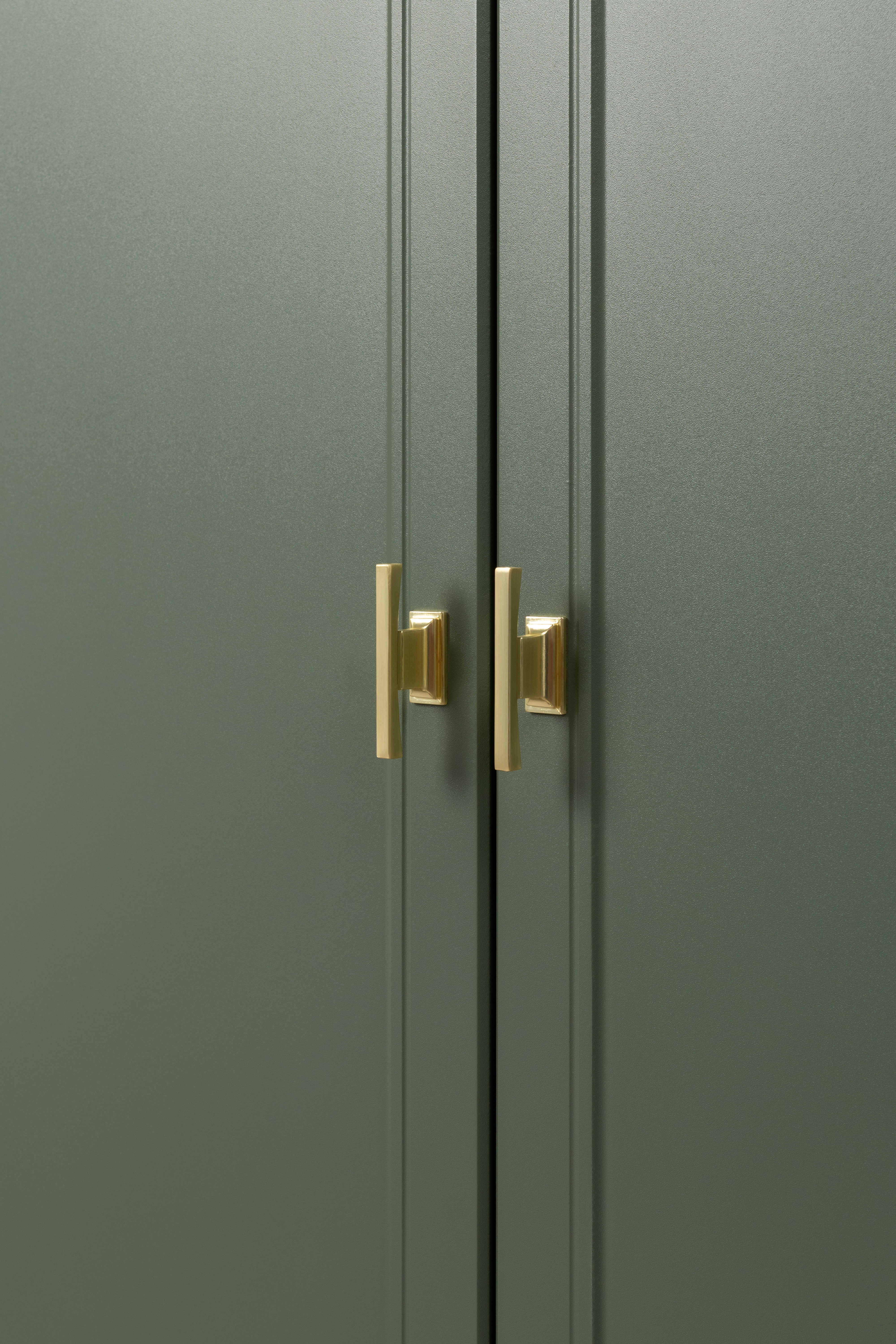 Изящные линии, глубокая фрезеровка фасадов из МДФ и благородные оттенки. Утончённая «Слоновая кость» и изысканная «Олива Шагрень» с глубоким зелёным тоном — создают атмосферу уюта, тепла и благородства. Металлические ручки и опоры золотого цвета придают мебели утончённый блеск, а петли и направляющие с доводчиками обеспечивают плавное и бесшумное закрытие фасадов.