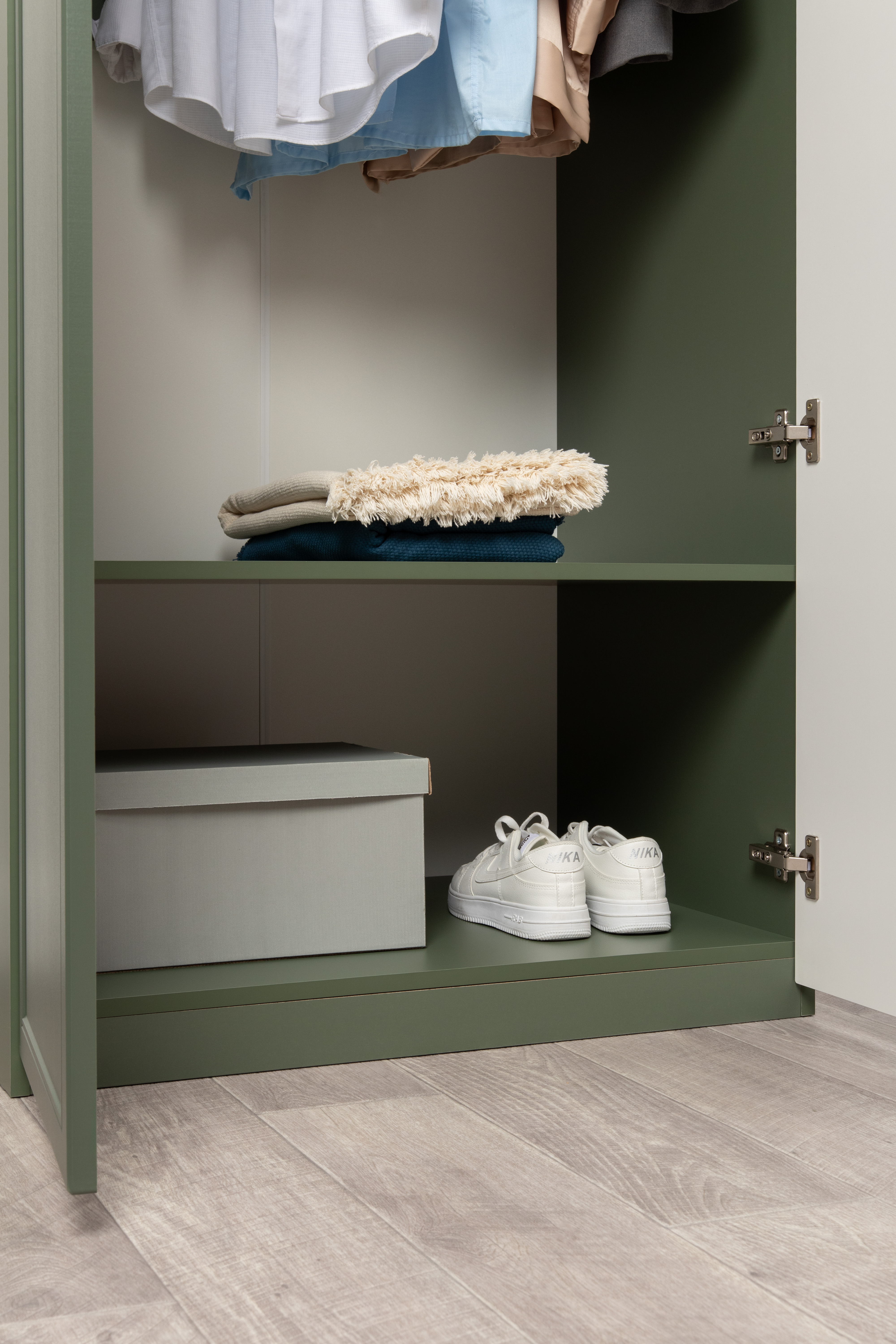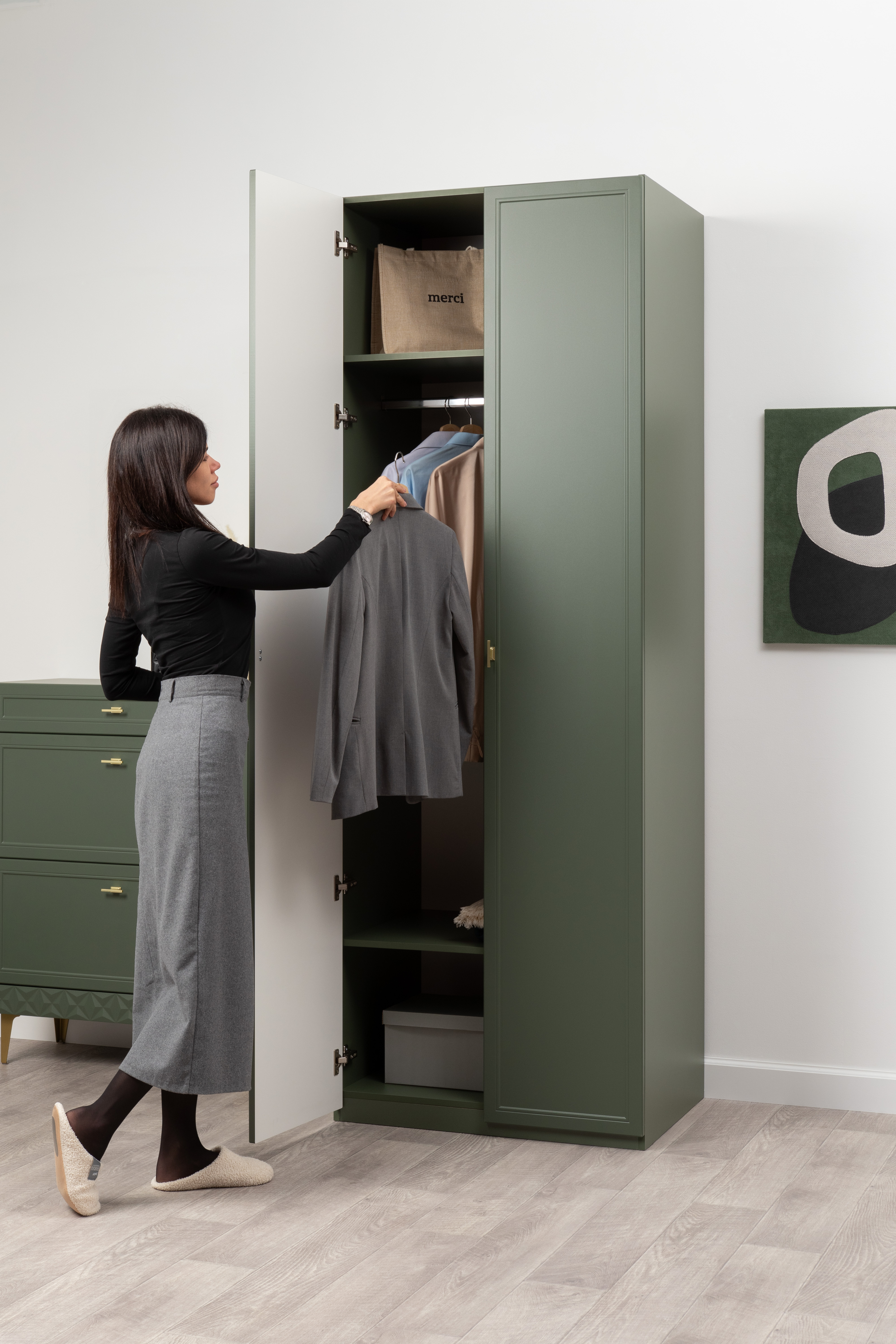 Шкаф двустворчатый Марион 16.340.02 дымчатый зеленый K521, олива шагрень AG 1050 ПВХ