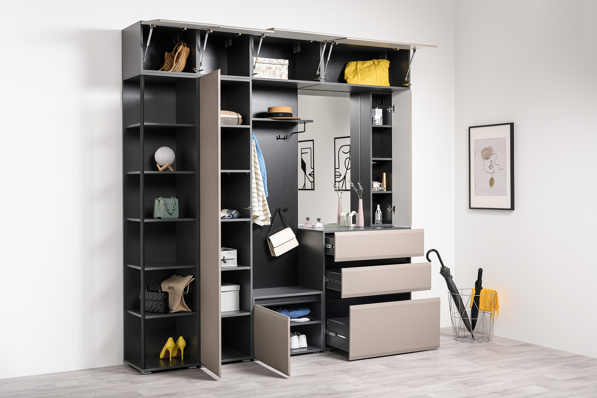 Шкаф для одежды Сидней 16.367.01 антрацит, веллюто капучино ПВХ (универсальная сборка)