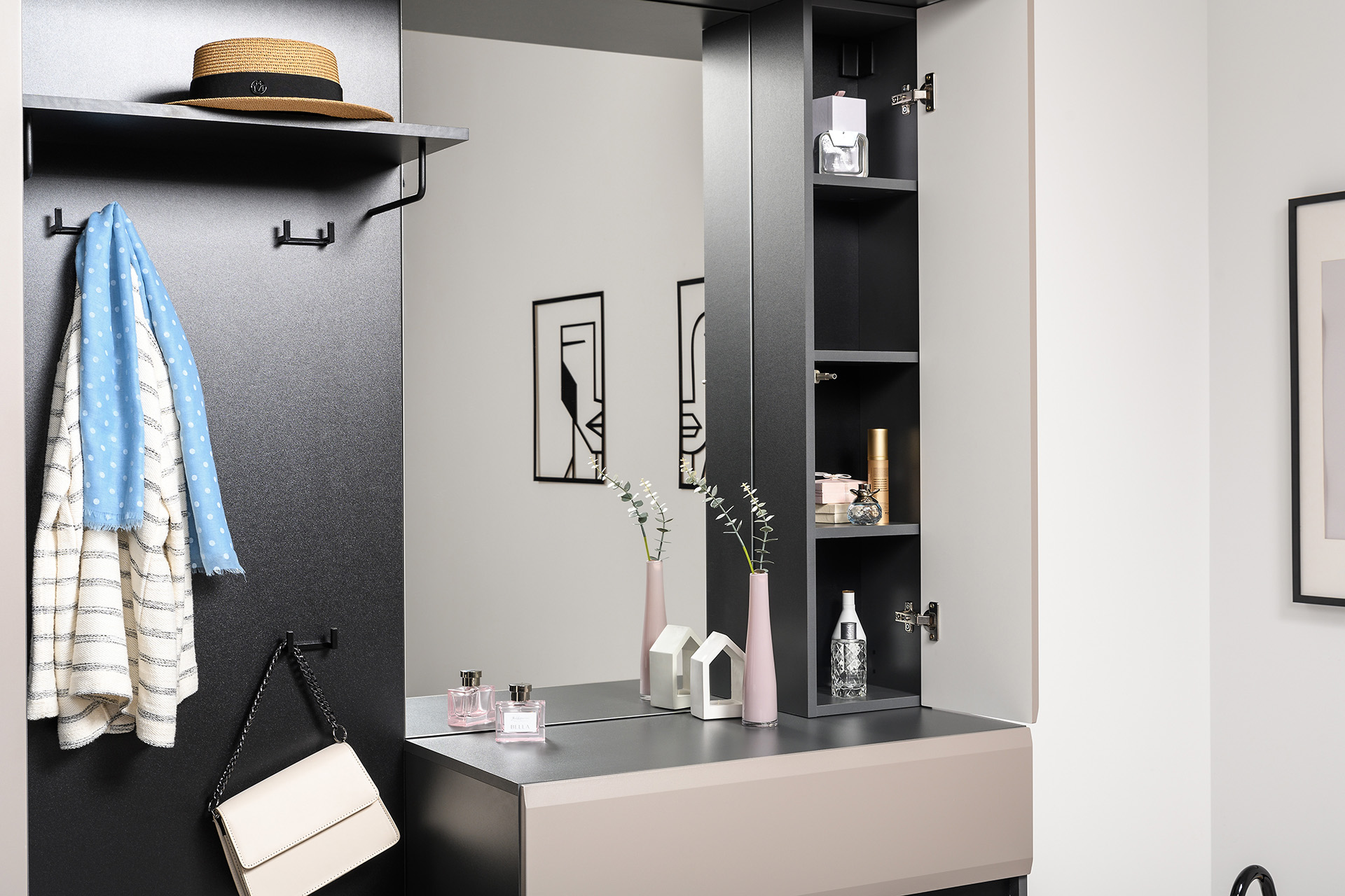 Тумба для обуви Сидней 16.129 антрацит, веллюто капучино ПВХ (универсальная сборка)