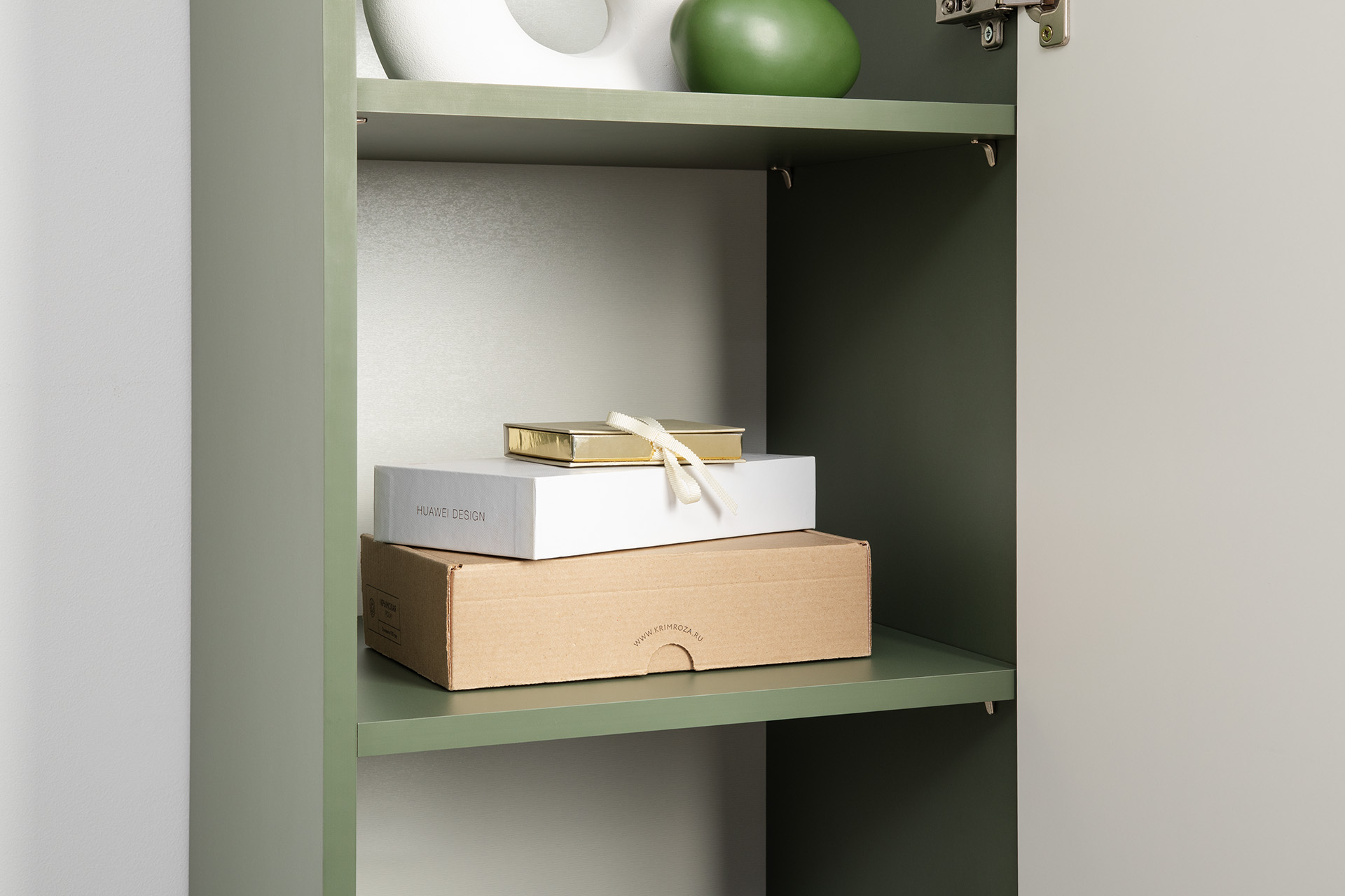 Шкаф-пенал Марион 16.333.01 дымчатый зеленый K521, олива шагрень AG 1050 ПВХ (собирается на любую сторону)