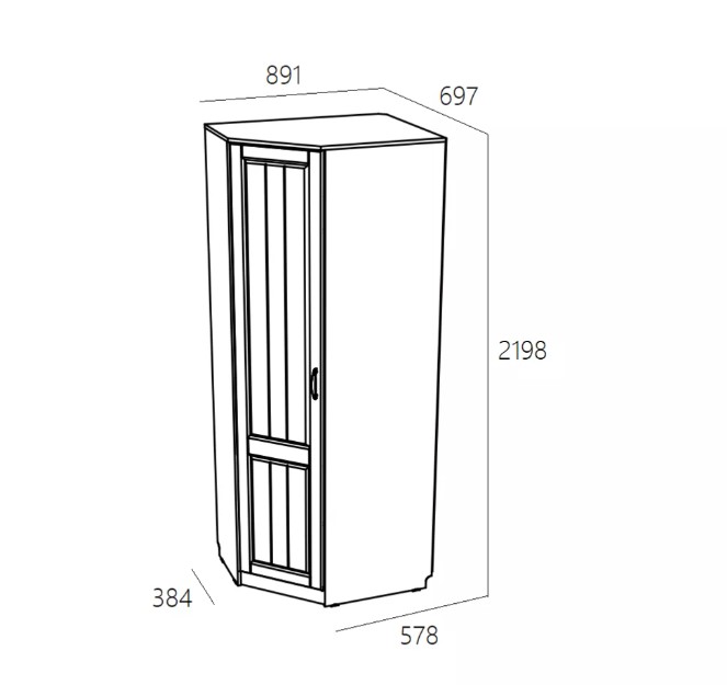 Со шкафом Оливия НМ 014.11 X получится максимально использовать пространство в комнате, задействовав место в углу. Внутри модуль разделен на две функциональные зоны. Секция с пятью полками подходит для хранения одежды в сложенном виде, а на штанге в другой половине шкафа можно разместить одежду на вешалках-плечиках. Две широкие полки, расположенные над и под штангой, удобны для хранения коробок.