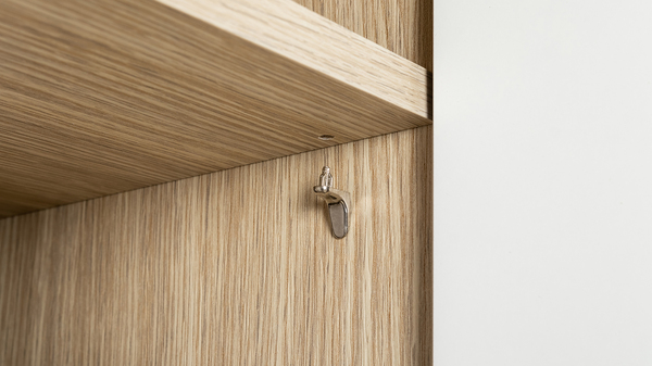 Фасады выполнены из МДФ с матовой поверхностью, изящная фрезеровка даёт визуальную лёгкость. Приглушённые натуральные цвета и чистые линии позволяют расслабиться и не фокусироваться на деталях интерьера. Лицевая фурнитура из натурального ясеня.