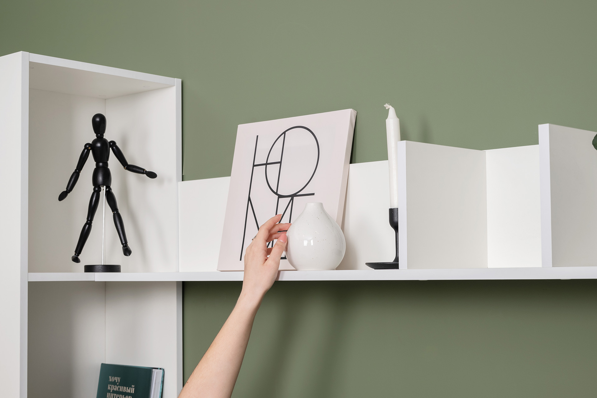 Стол журнальный, подставка Эйр 12.114 белый РЕ шагрень, вертикальная и горизонтальная установка