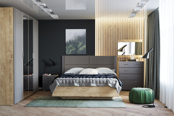 Спальня Livorno композиция 2 дуб бунратти, софт графит (кровать с ортопедическим основанием и подъемным механизмом)