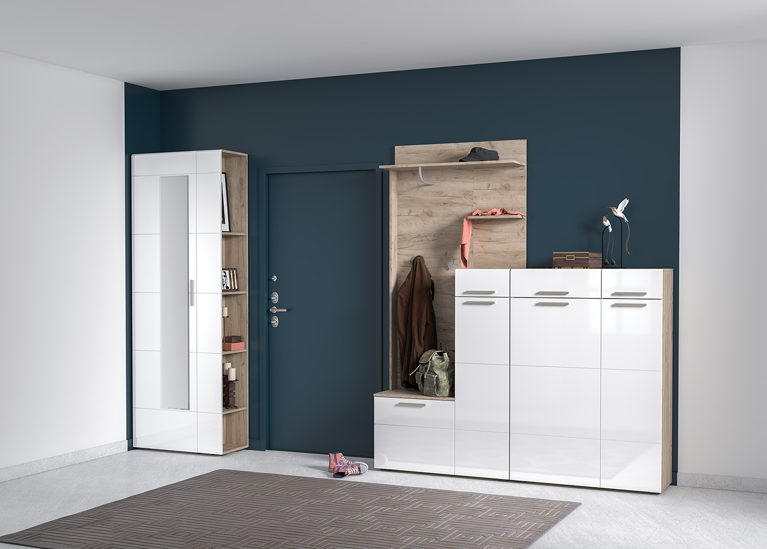 Шкаф многоцелевого назначения Лайн 10.16 (прихожая) дуб серый CRAFT, белый глянец ПВХ